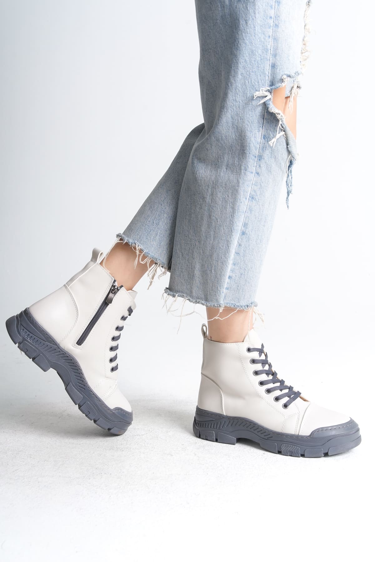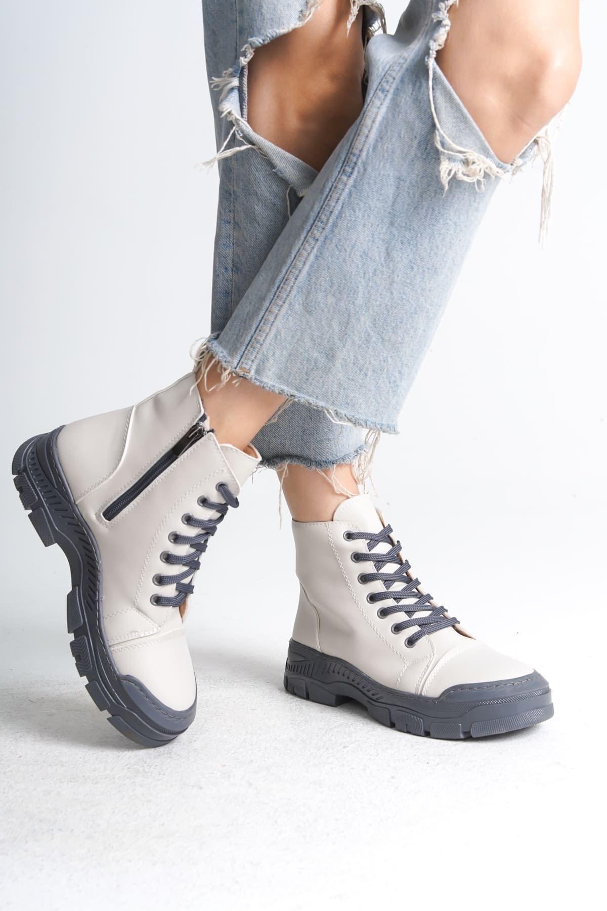 Regular price 1,499.00TL Sale price 1,099.00TLSULINA Lace-Up Zippered Orthopedic Sole Women's Boots - Cream Gray