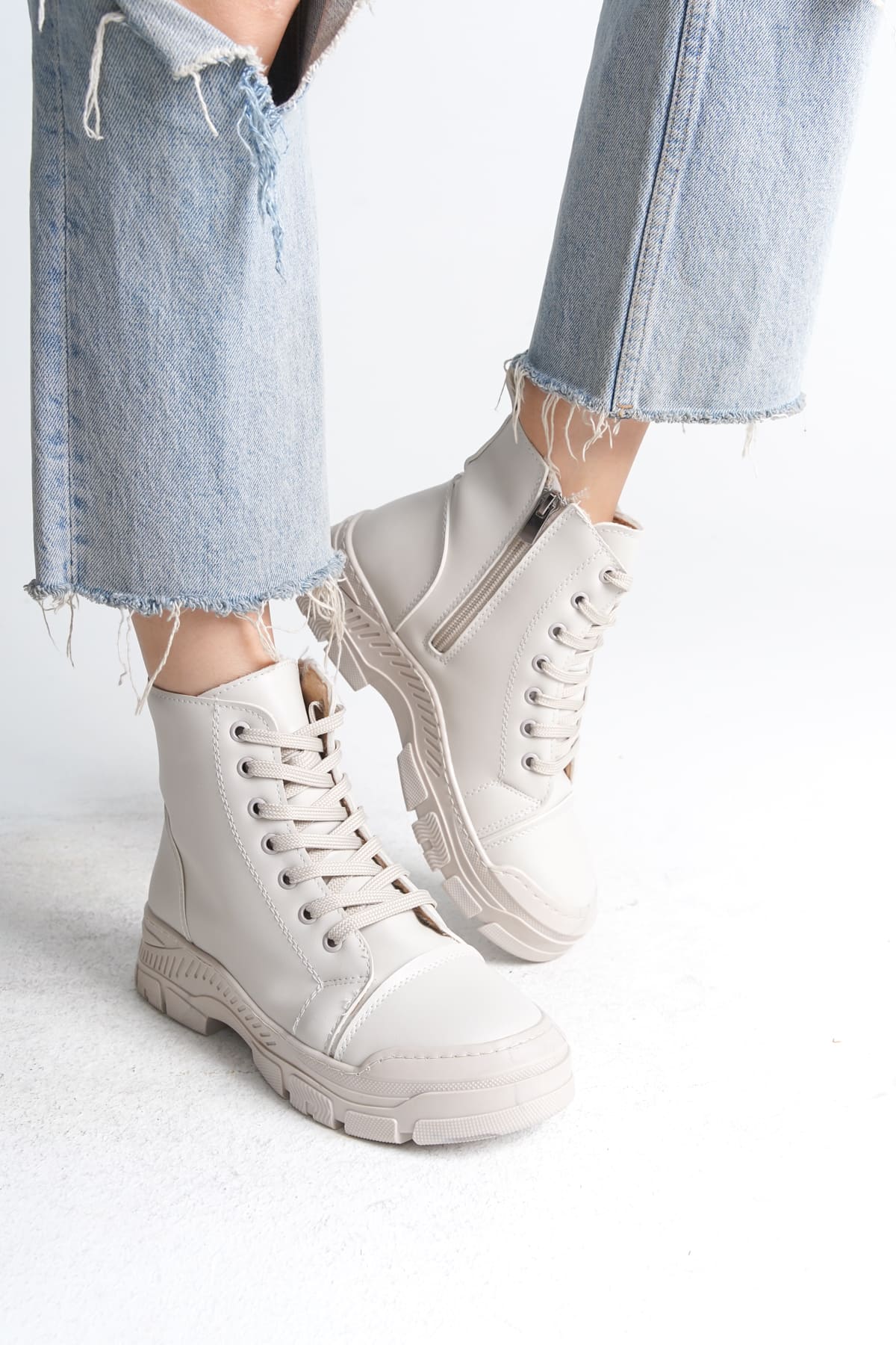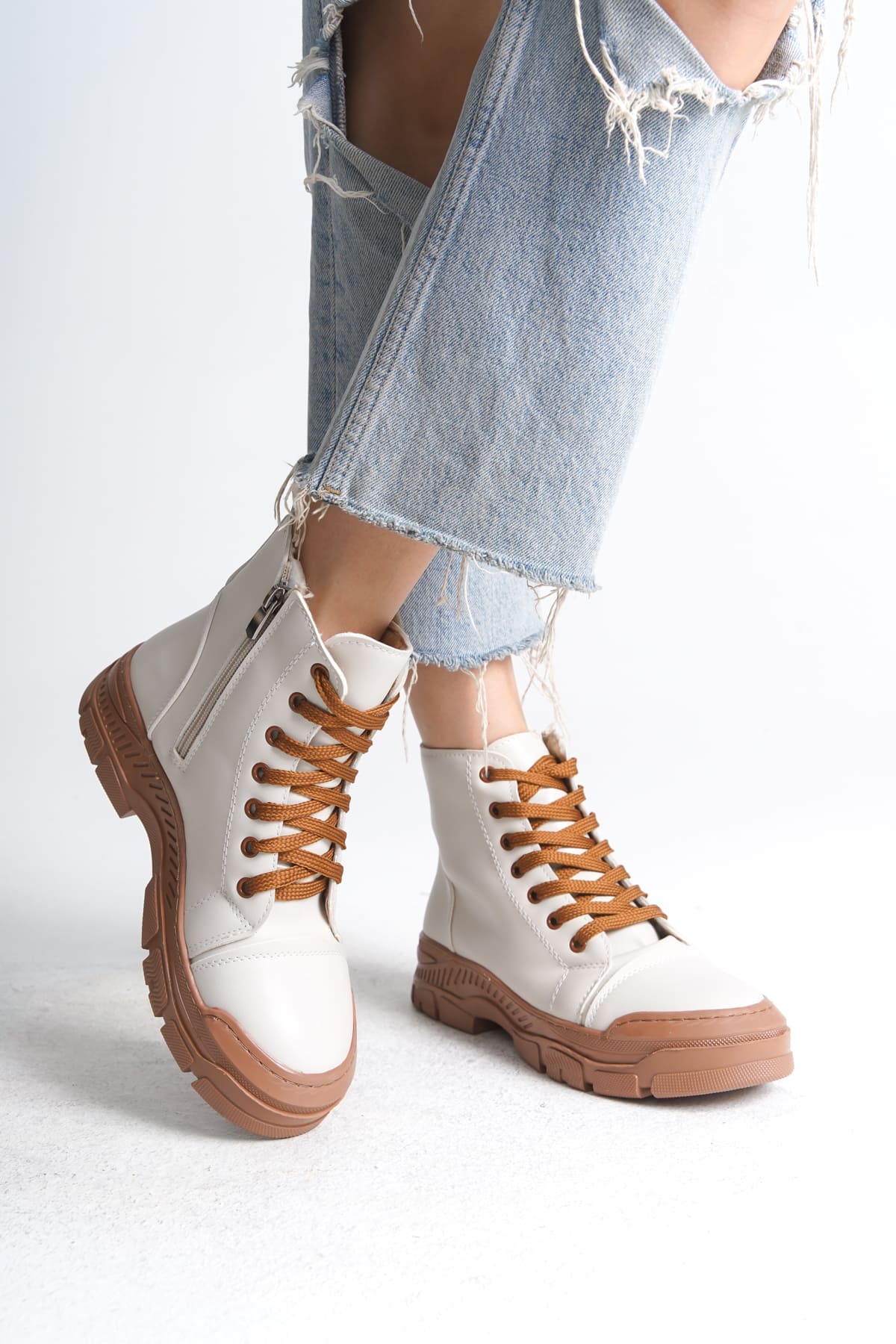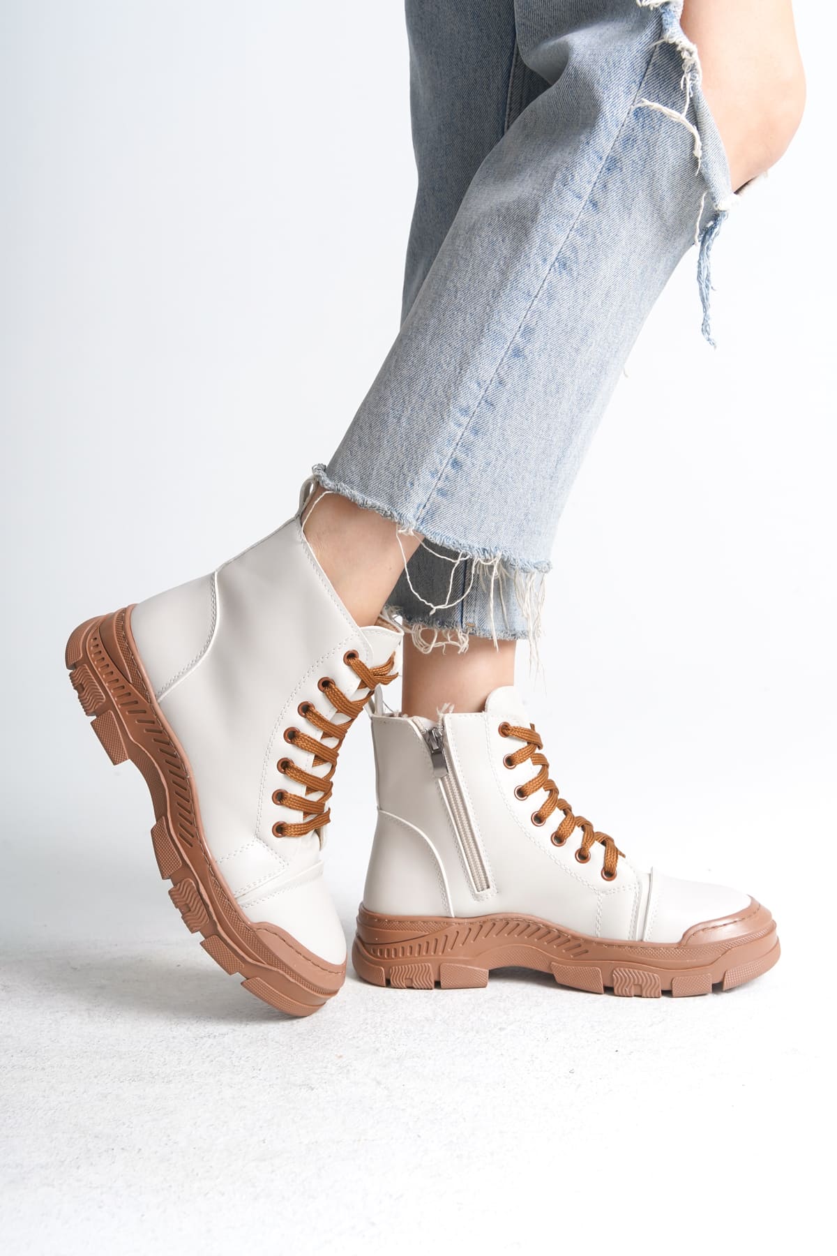Regular price 1,599.00TL Sale price 1,099.00TLAMBER Lace-Up Zippered Orthopedic Sole Women's Boots - Cream
