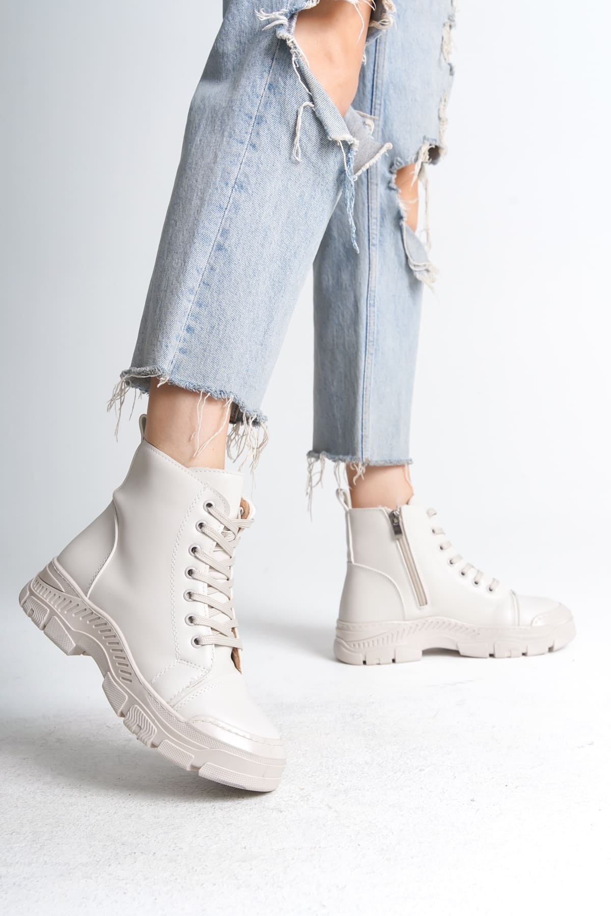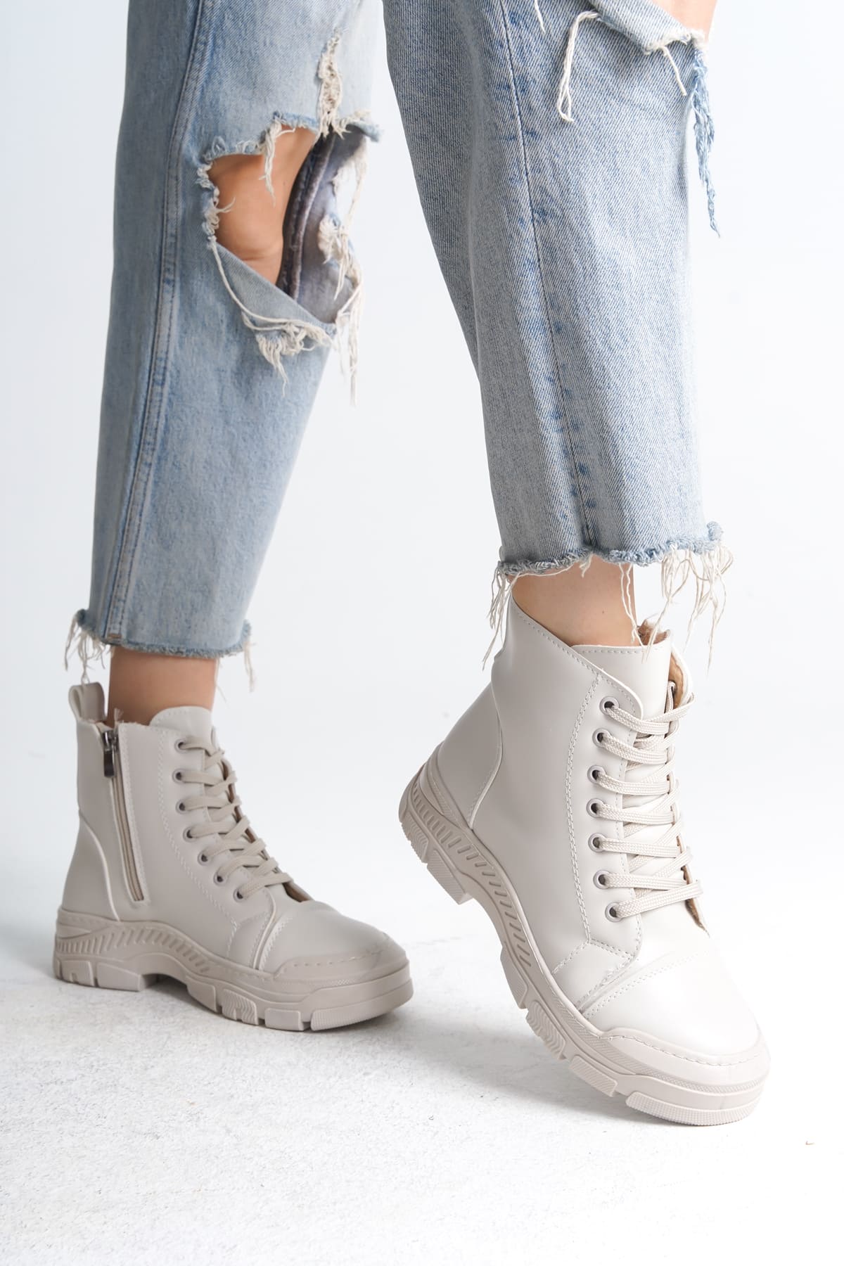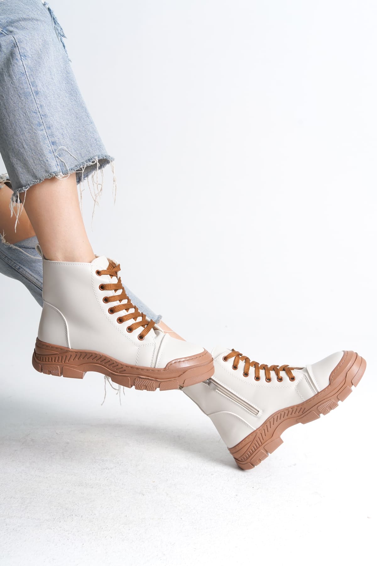 Regular price 1,599.00TL Sale price 1,099.00TLAMBER Lace-Up Zippered Orthopedic Sole Women's Boots - Cream