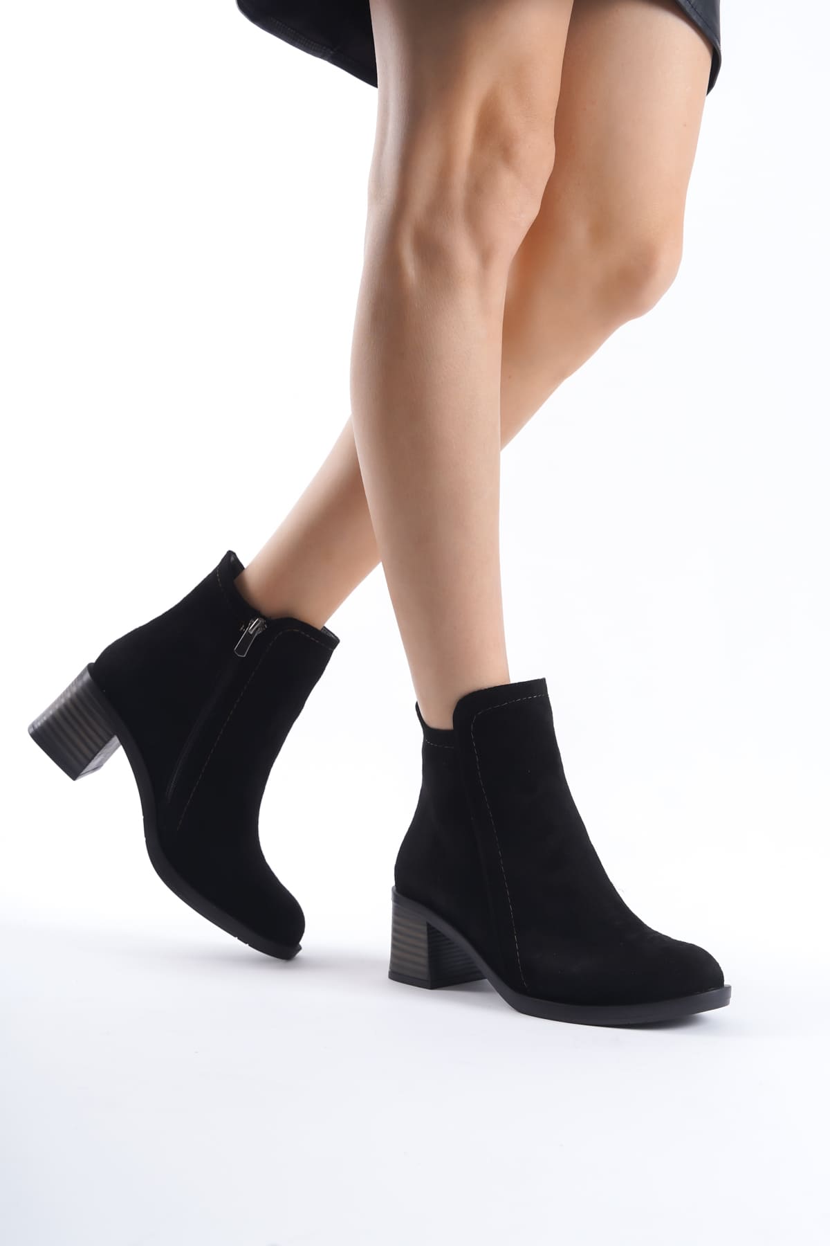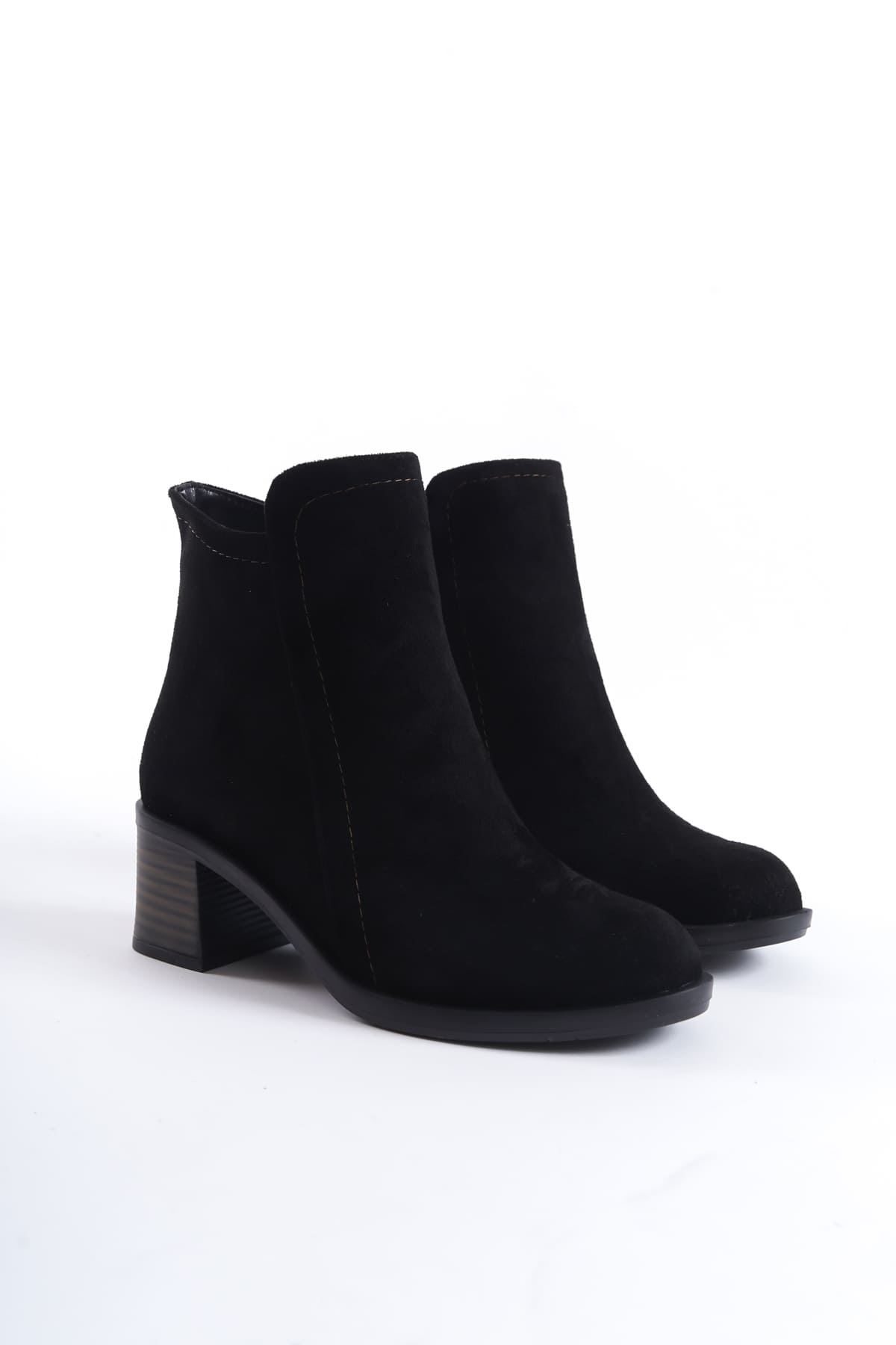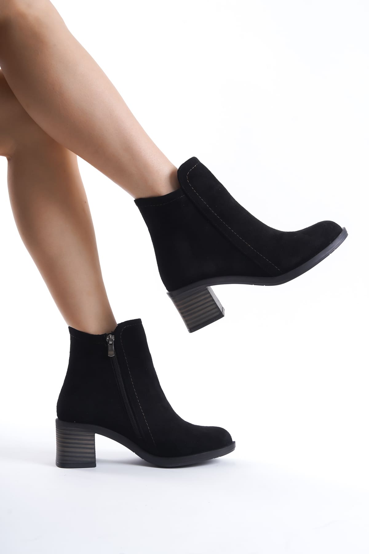 LARIO Zippered Orthopedic Sole Heeled Suede Women's Boots - Black LARIO Zippered Orthopedic Sole Heeled Suede Women's Boots - Black