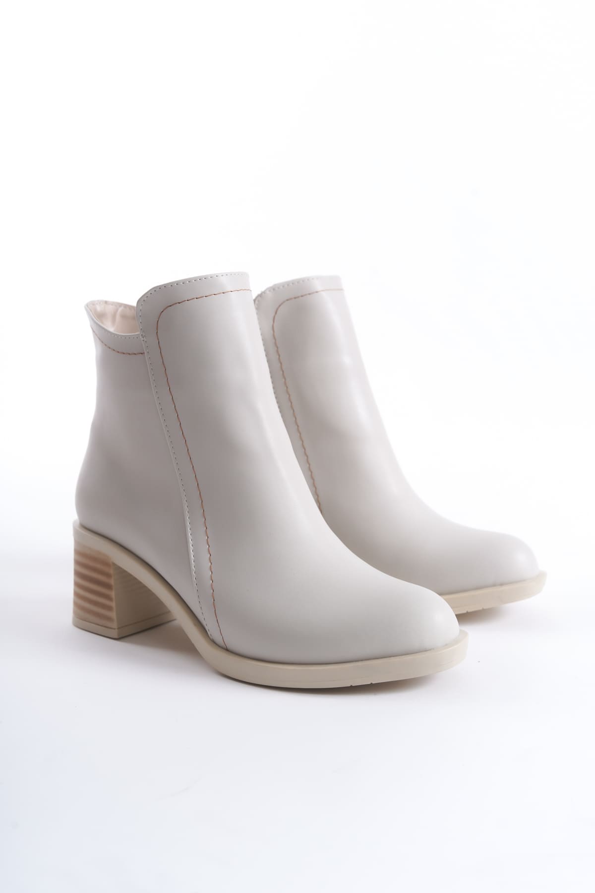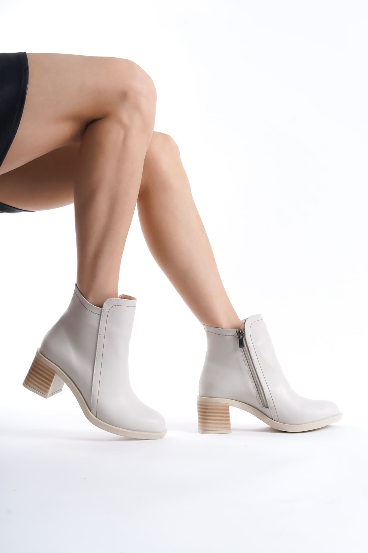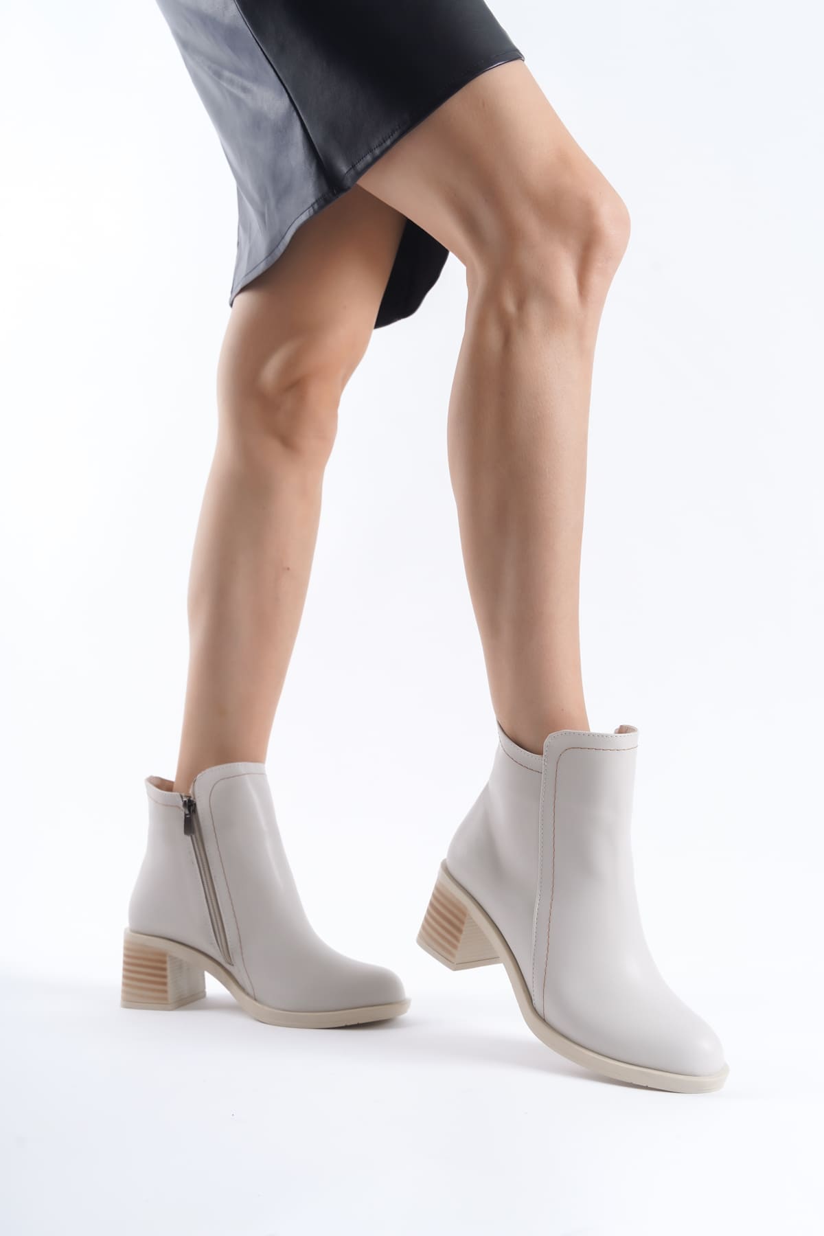 LARIO Zippered Orthopedic Sole Heeled Women's Boots - Cream LARIO Zippered Orthopedic Sole Heeled Women's Boots - Cream