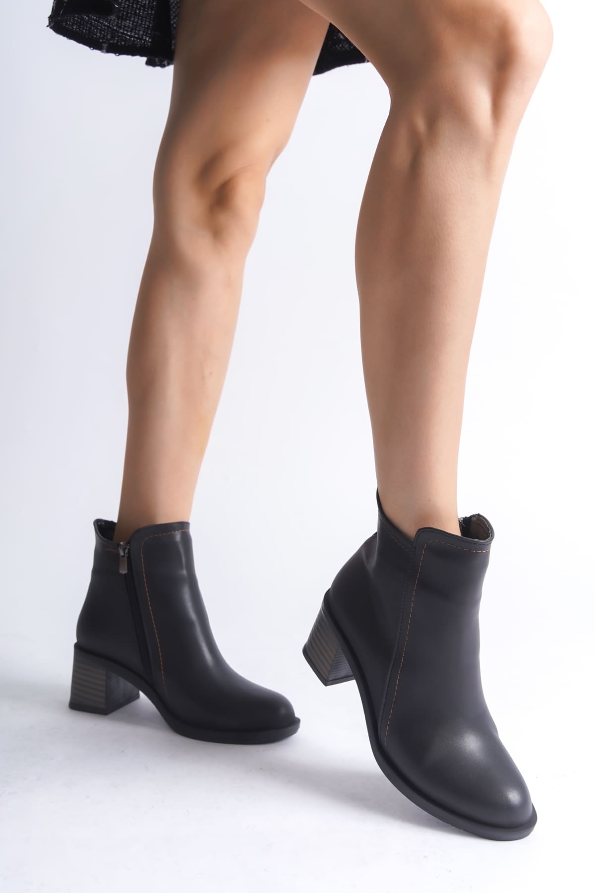 LARIO Zippered Orthopedic Sole Heeled Women's Boots - Black LARIO Zippered Orthopedic Sole Heeled Women's Boots - Black