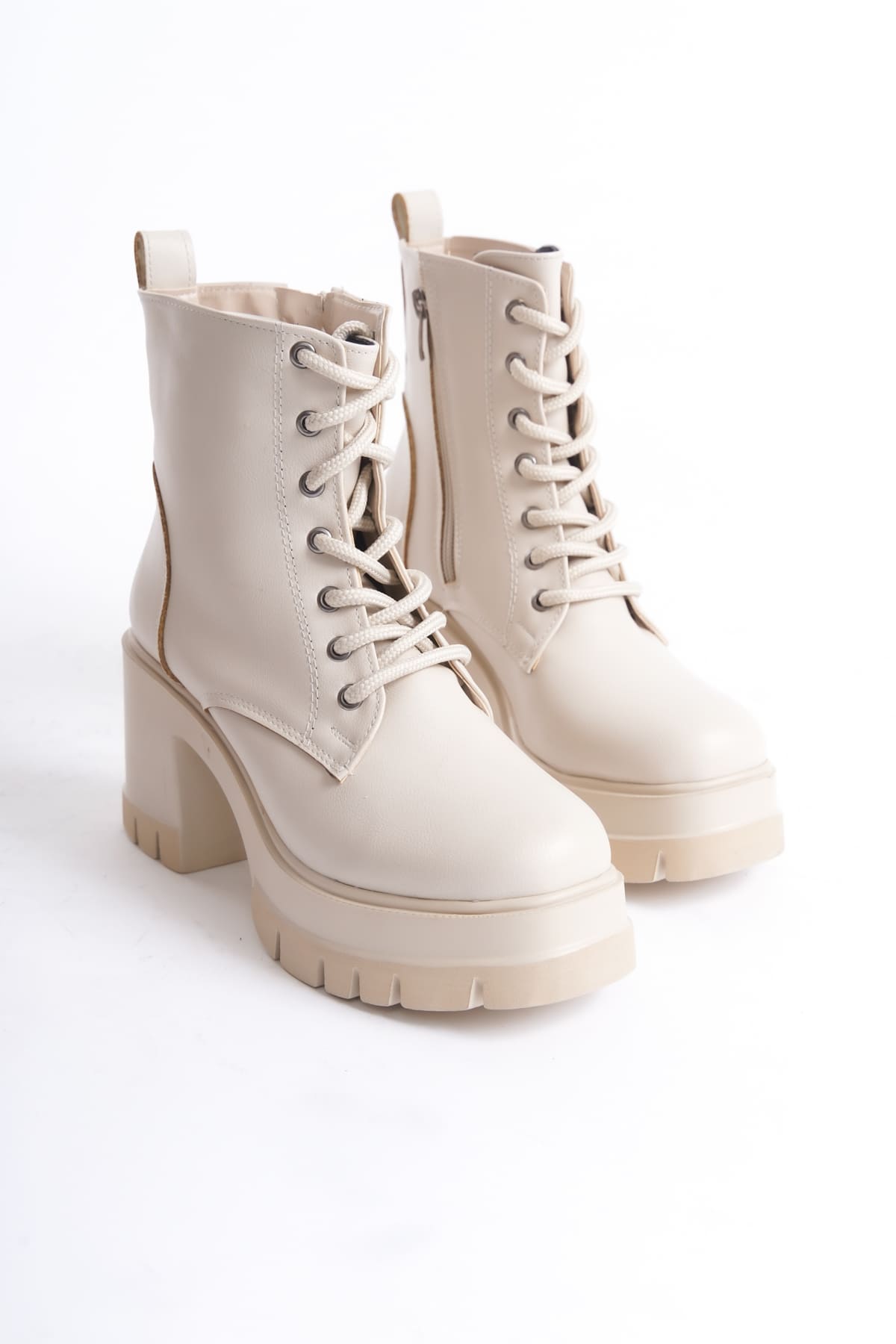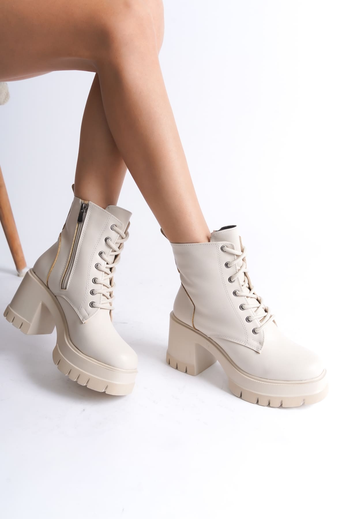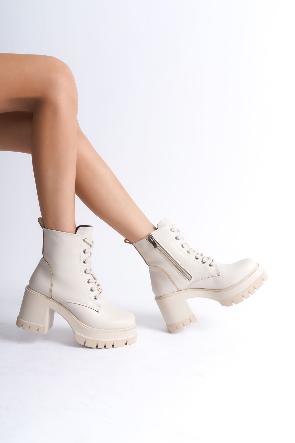 LAUREN Lace-Up Zippered Orthopedic Heeled Women's Cream Boots LAUREN Lace-Up Zippered Orthopedic Heeled Women's Cream Boots