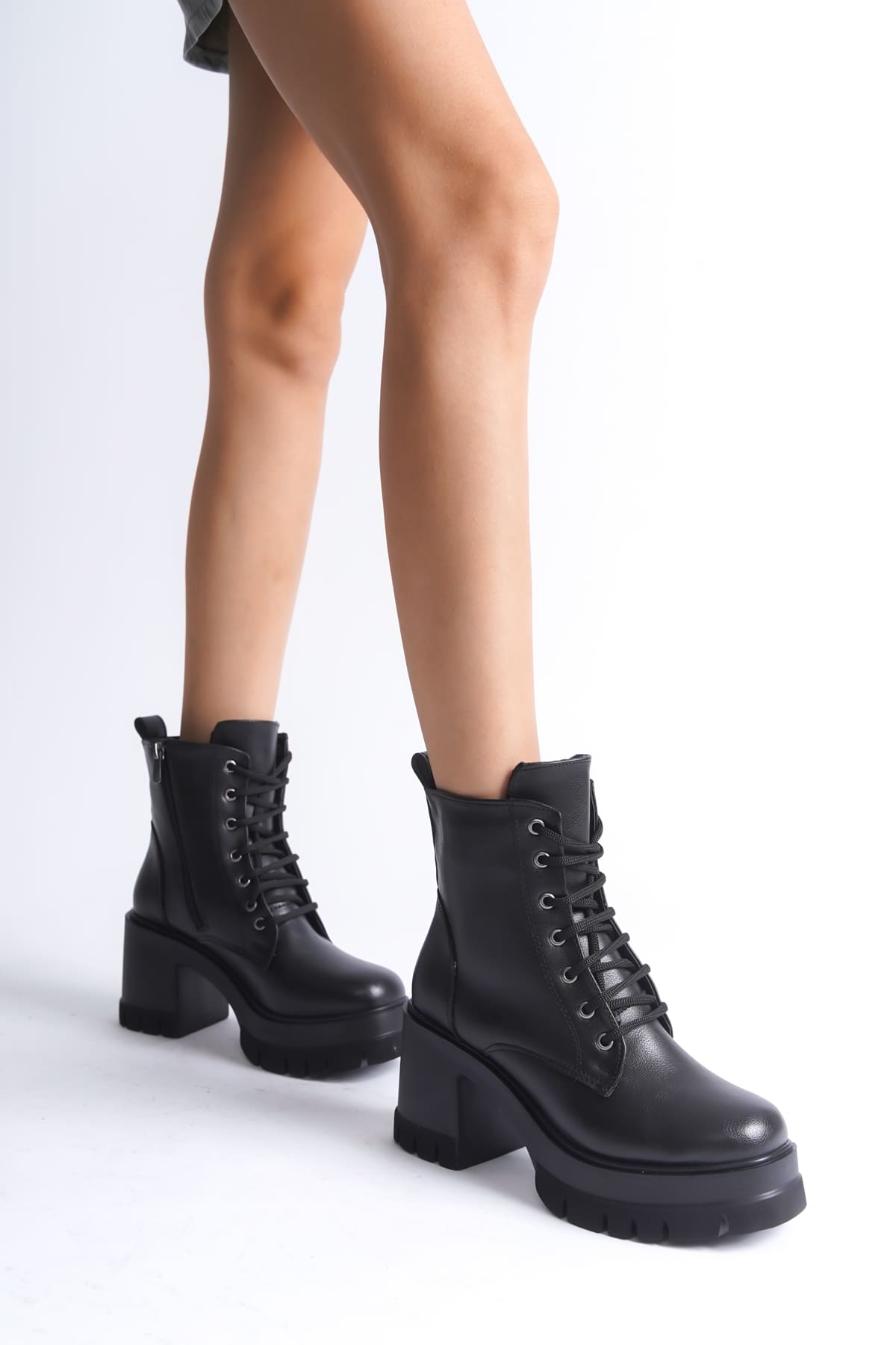 Regular price 1,699.00TL Sale price 1,199.00TLLENA Lace-Up Zippered Orthopedic Sole Heeled Women's Boots - Black