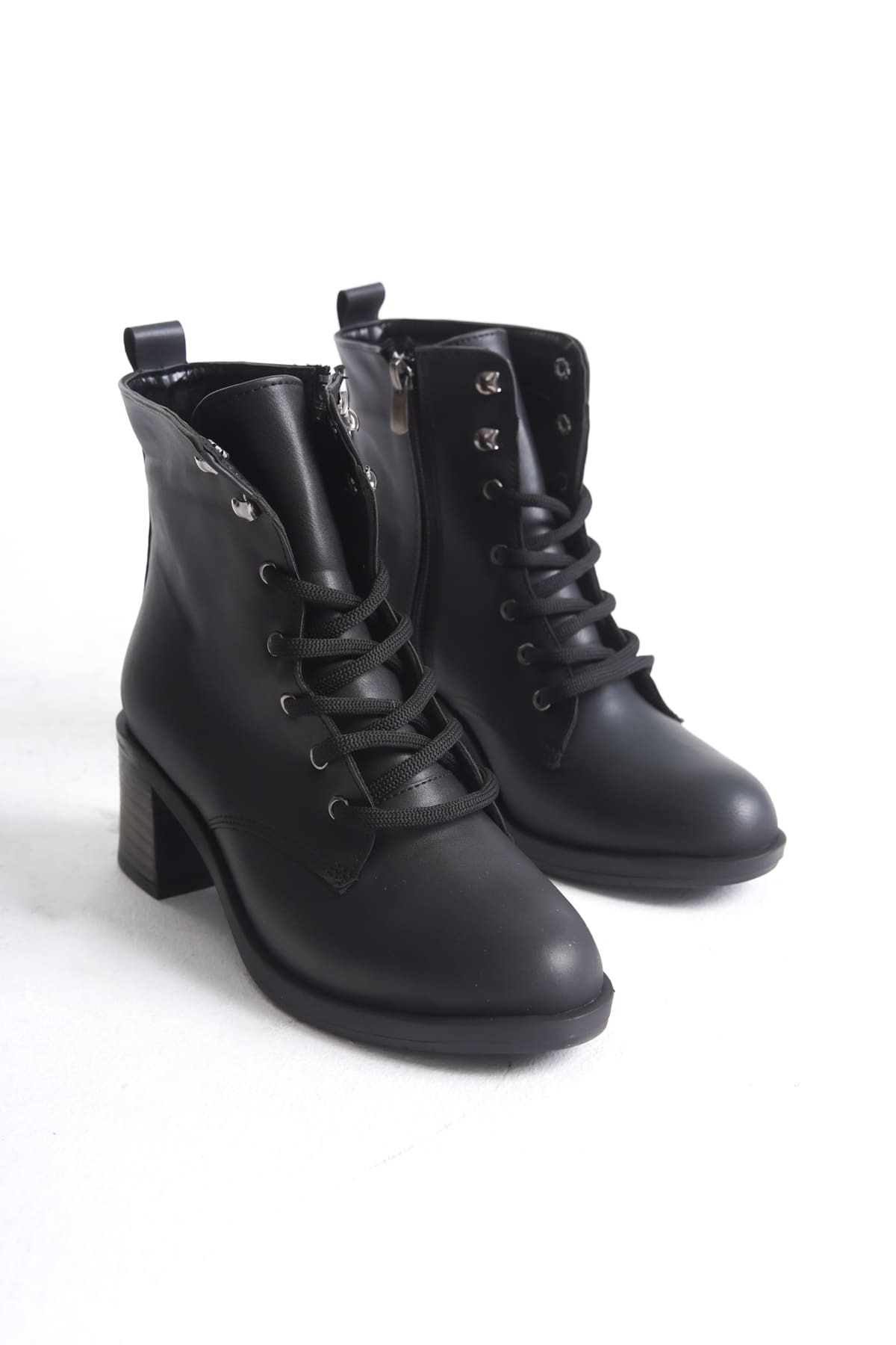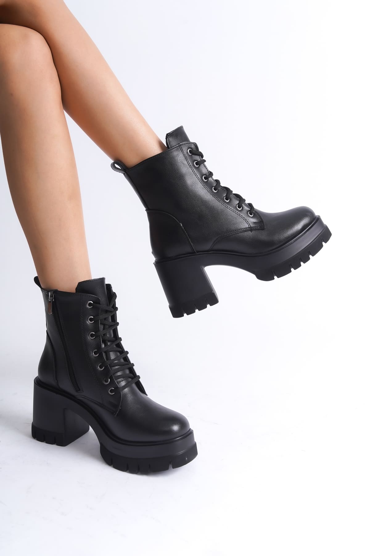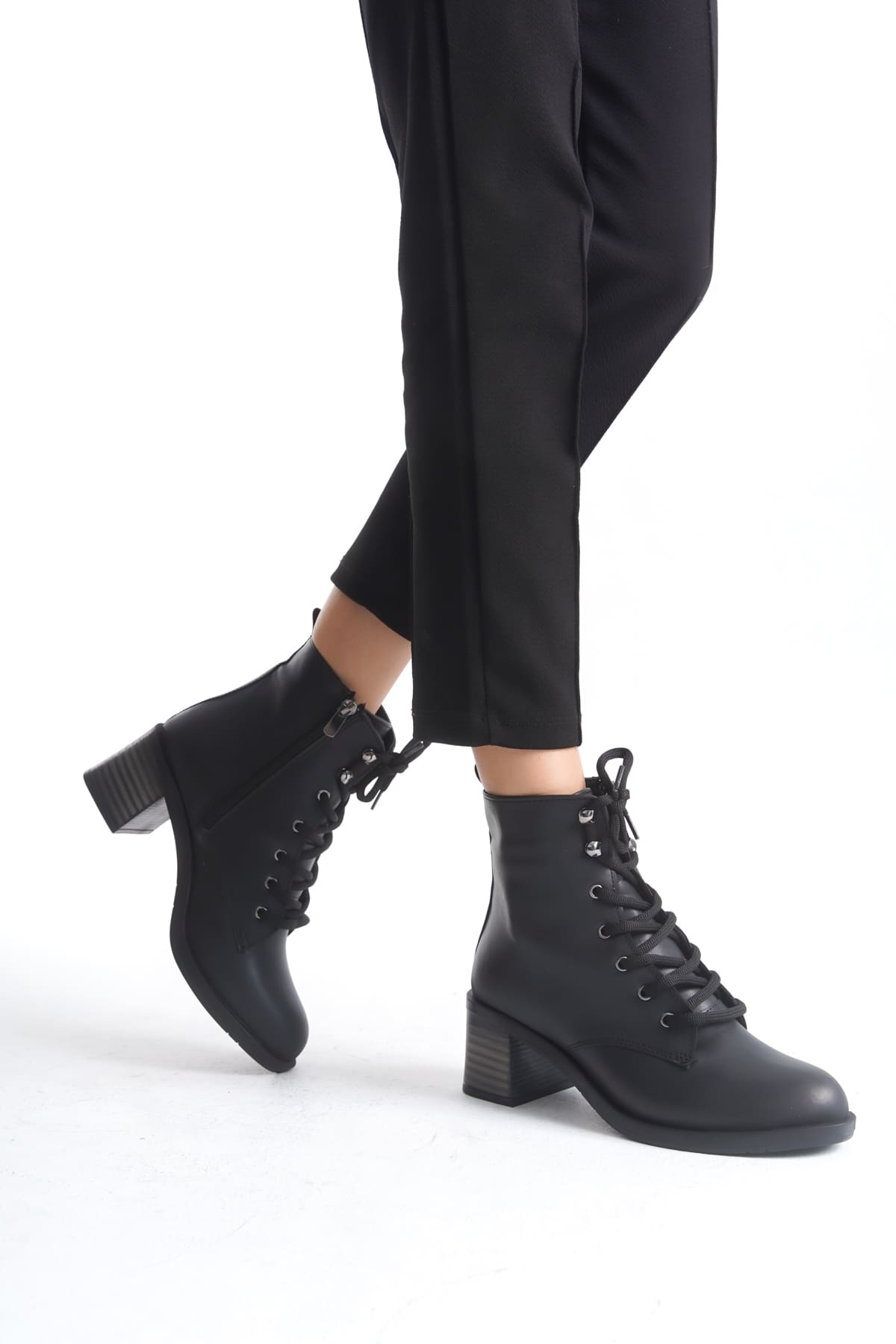 LENA Lace-Up Zippered Orthopedic Sole Heeled Women's Boots - Black LENA Lace-Up Zippered Orthopedic Sole Heeled Women's Boots - Black