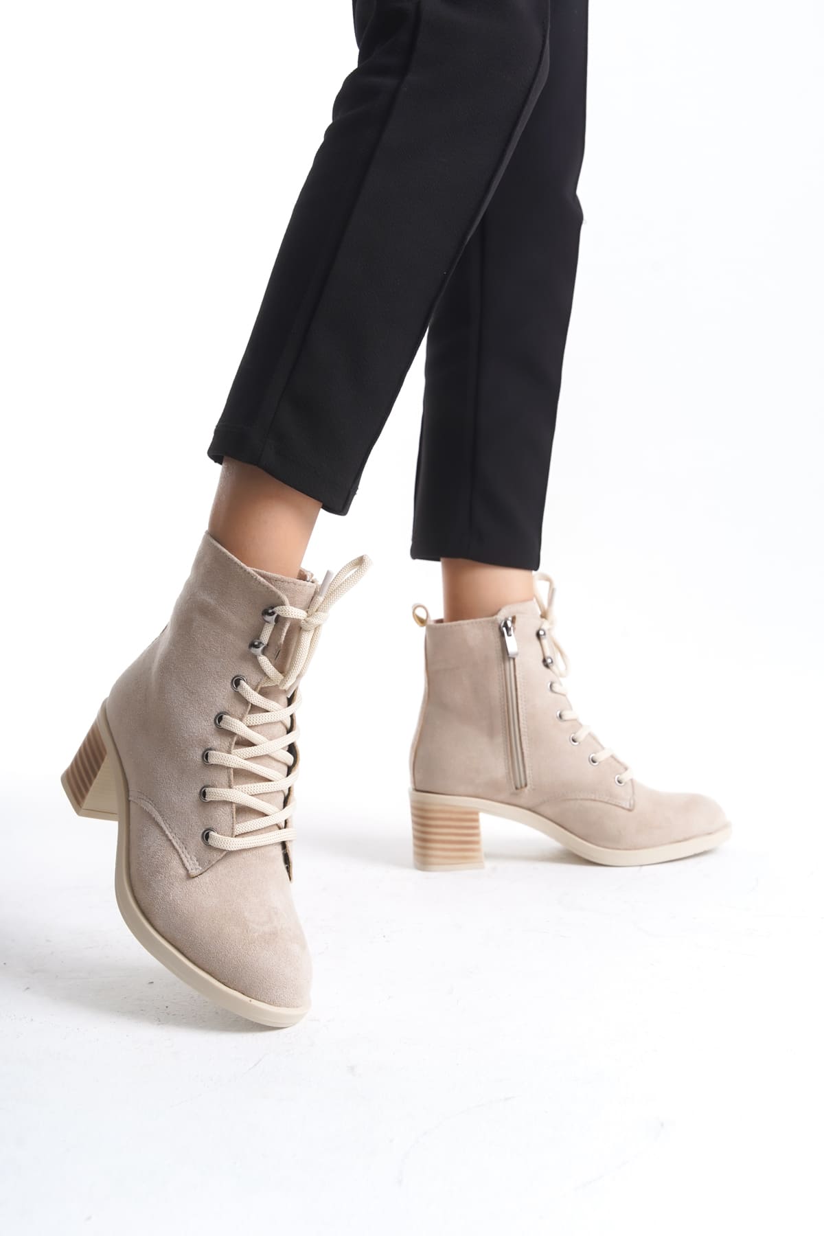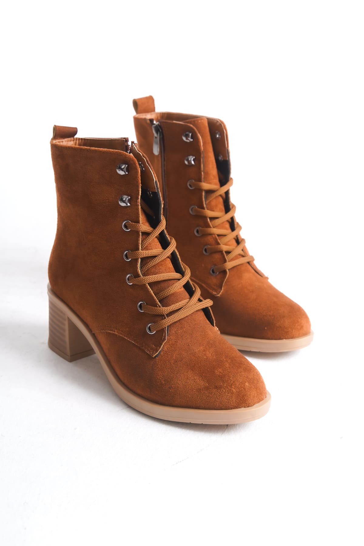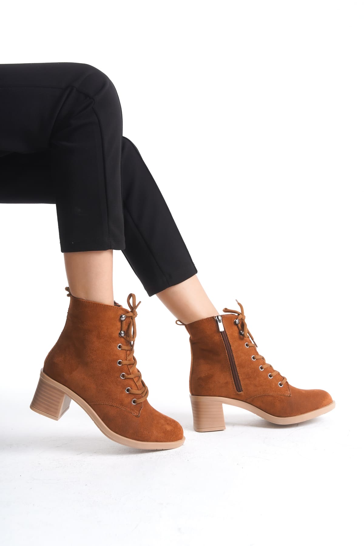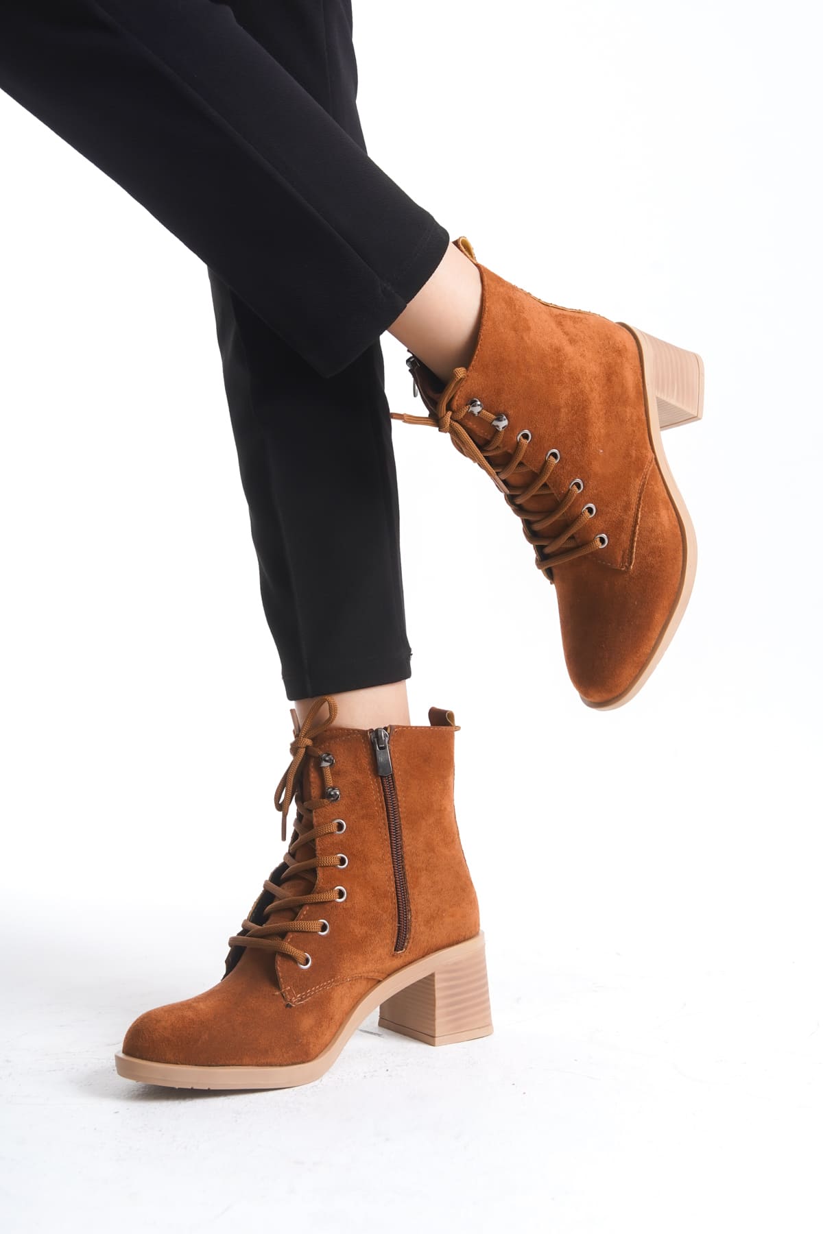 LENA Lace-Up Zippered Orthopedic Sole Heeled Women's Boots - Suede Tan LENA Lace-Up Zippered Orthopedic Sole Heeled Women's Boots - Suede Tan