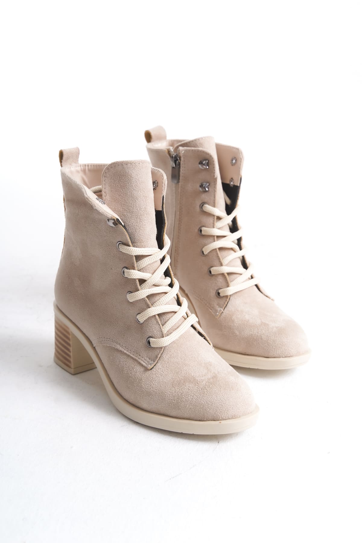 LENA Lace-Up Zippered Orthopedic Sole Heeled Women's Boots - Suede Skin LENA Lace-Up Zippered Orthopedic Sole Heeled Women's Boots - Suede Skin