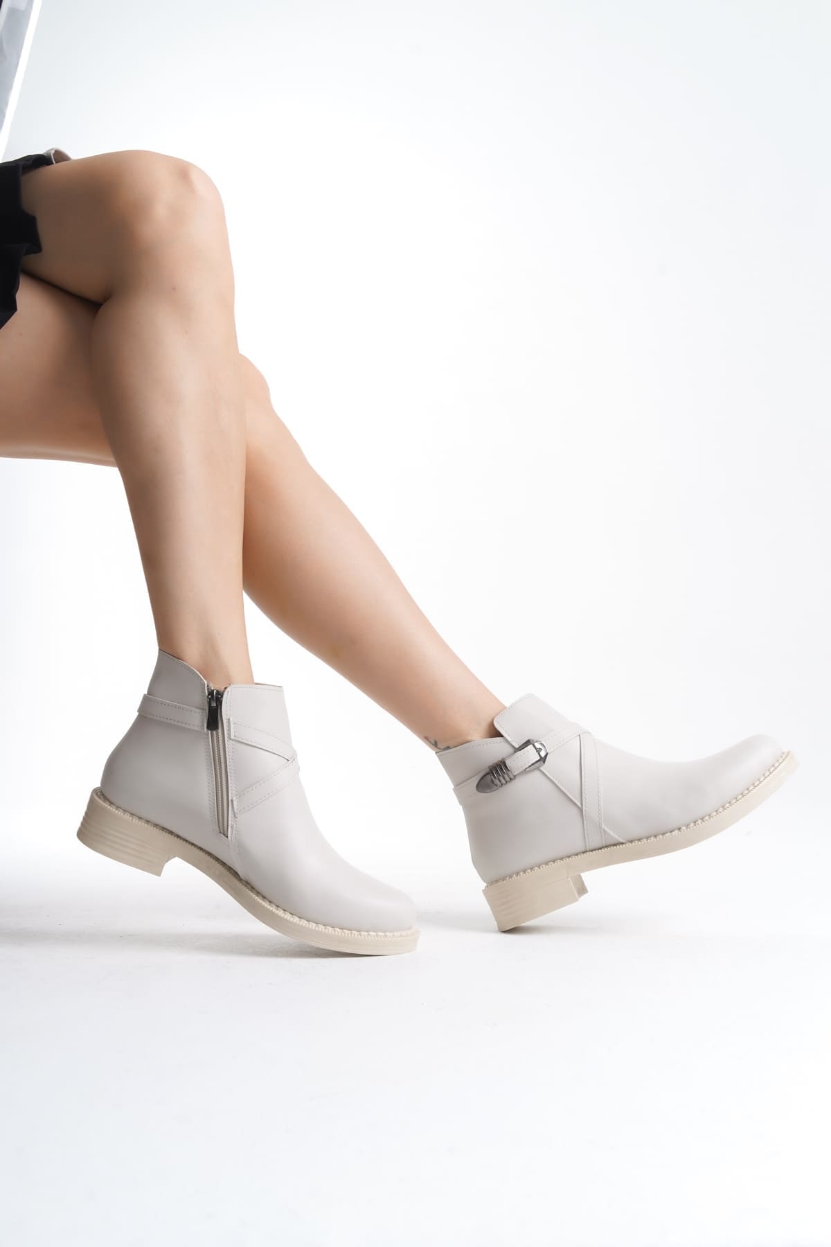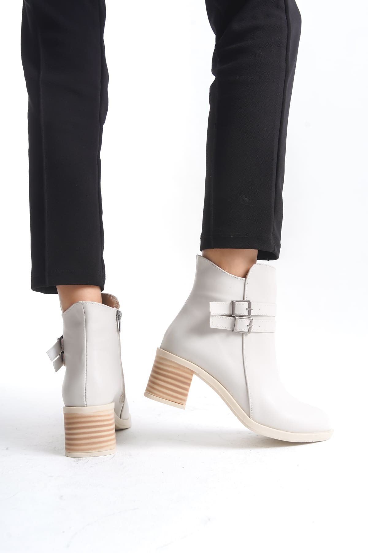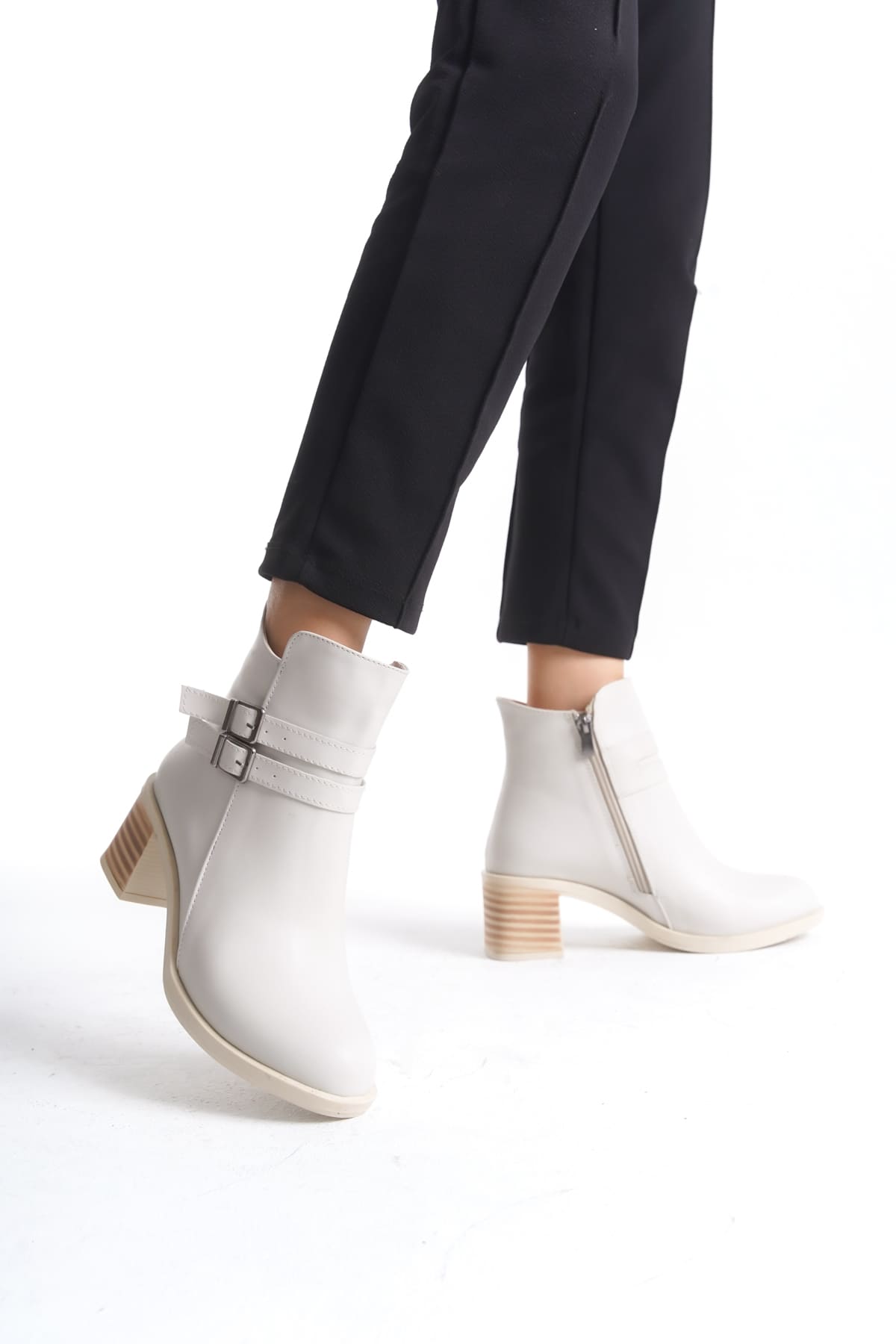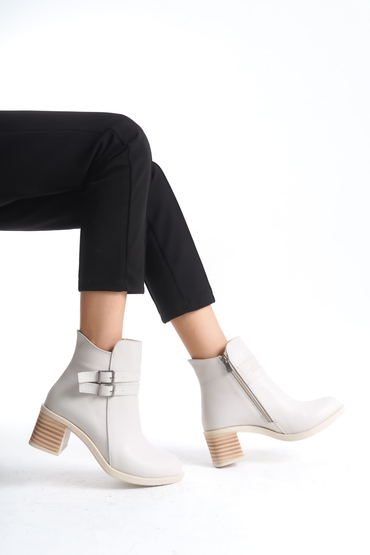 NOE - Buckled Zippered Orthopedic Sole Heeled Women's Cream Boots NOE - Buckled Zippered Orthopedic Sole Heeled Women's Cream Boots