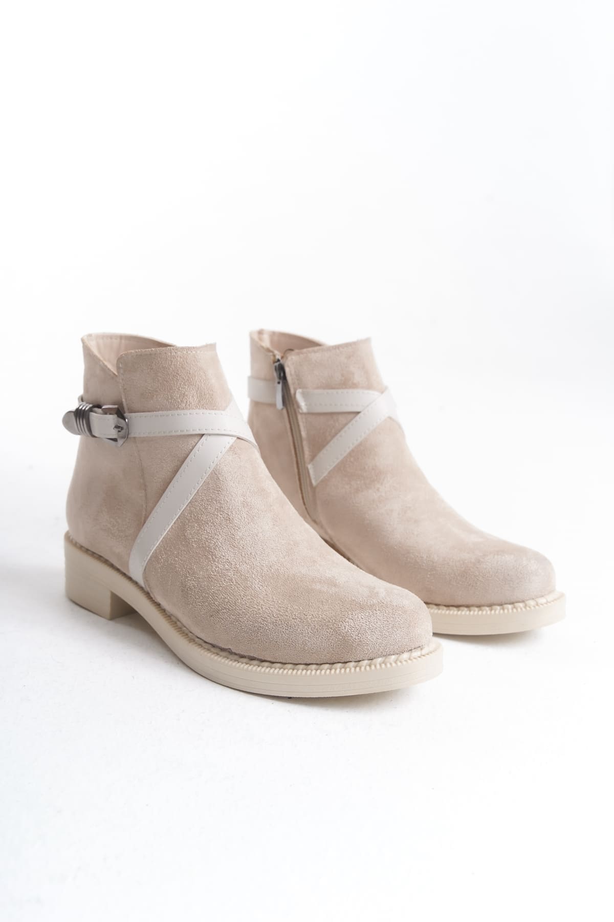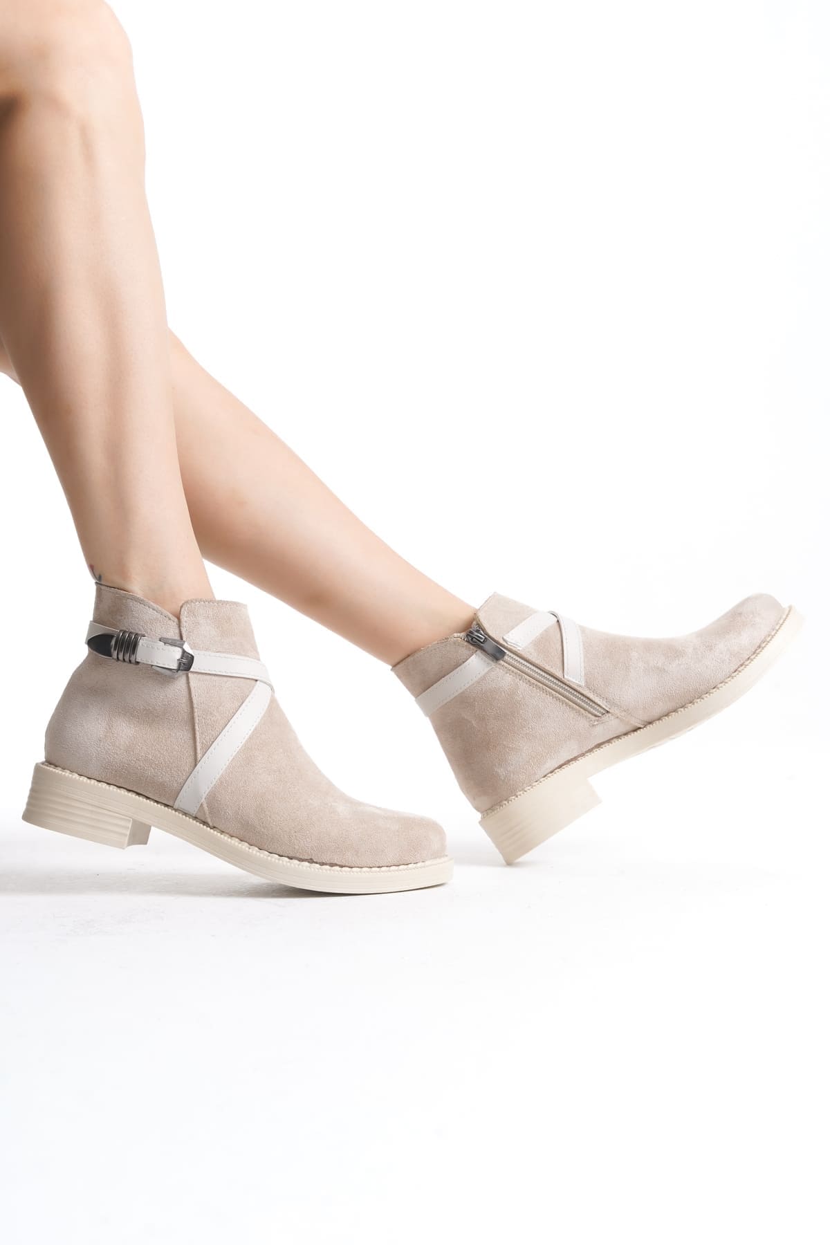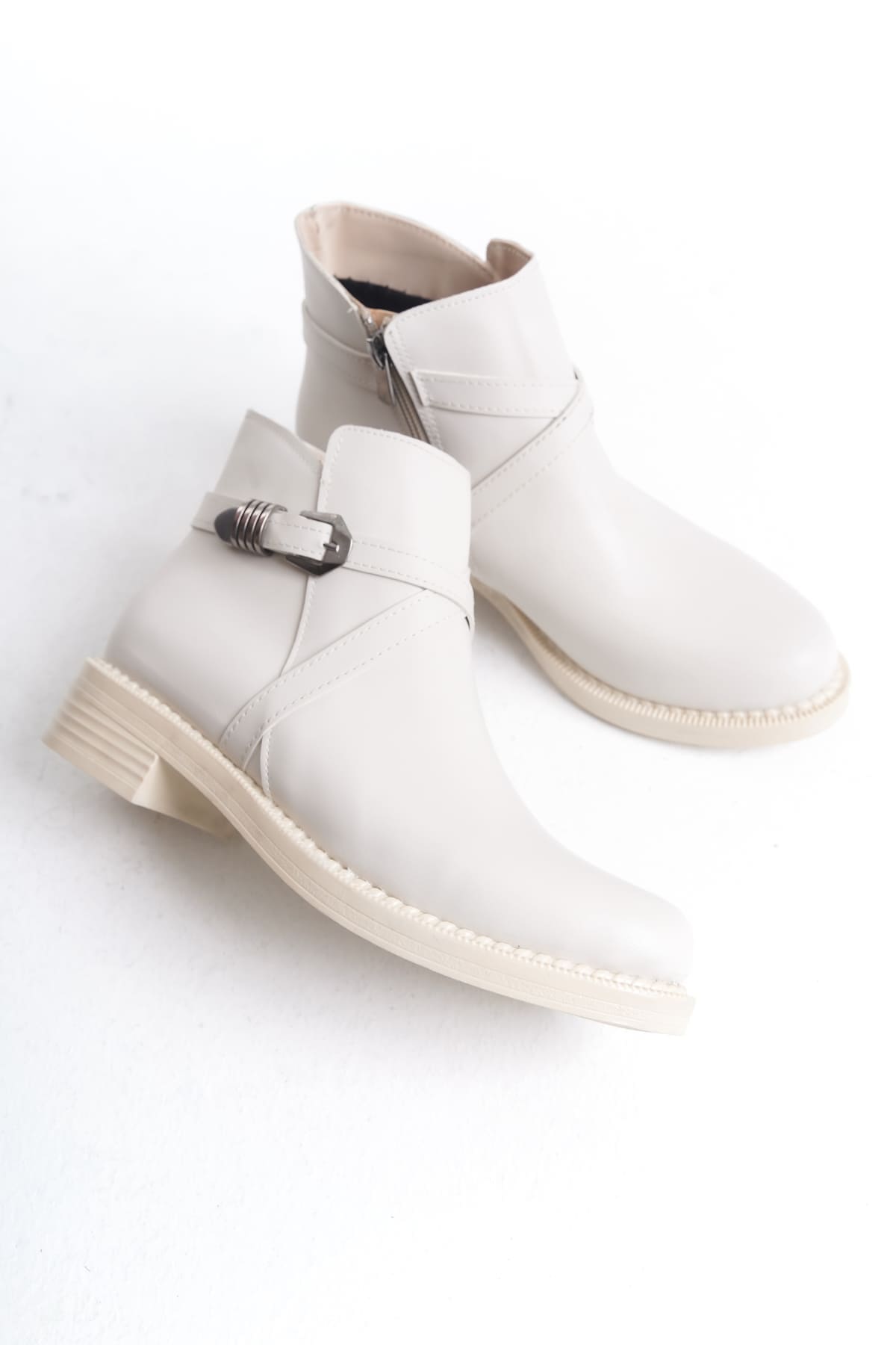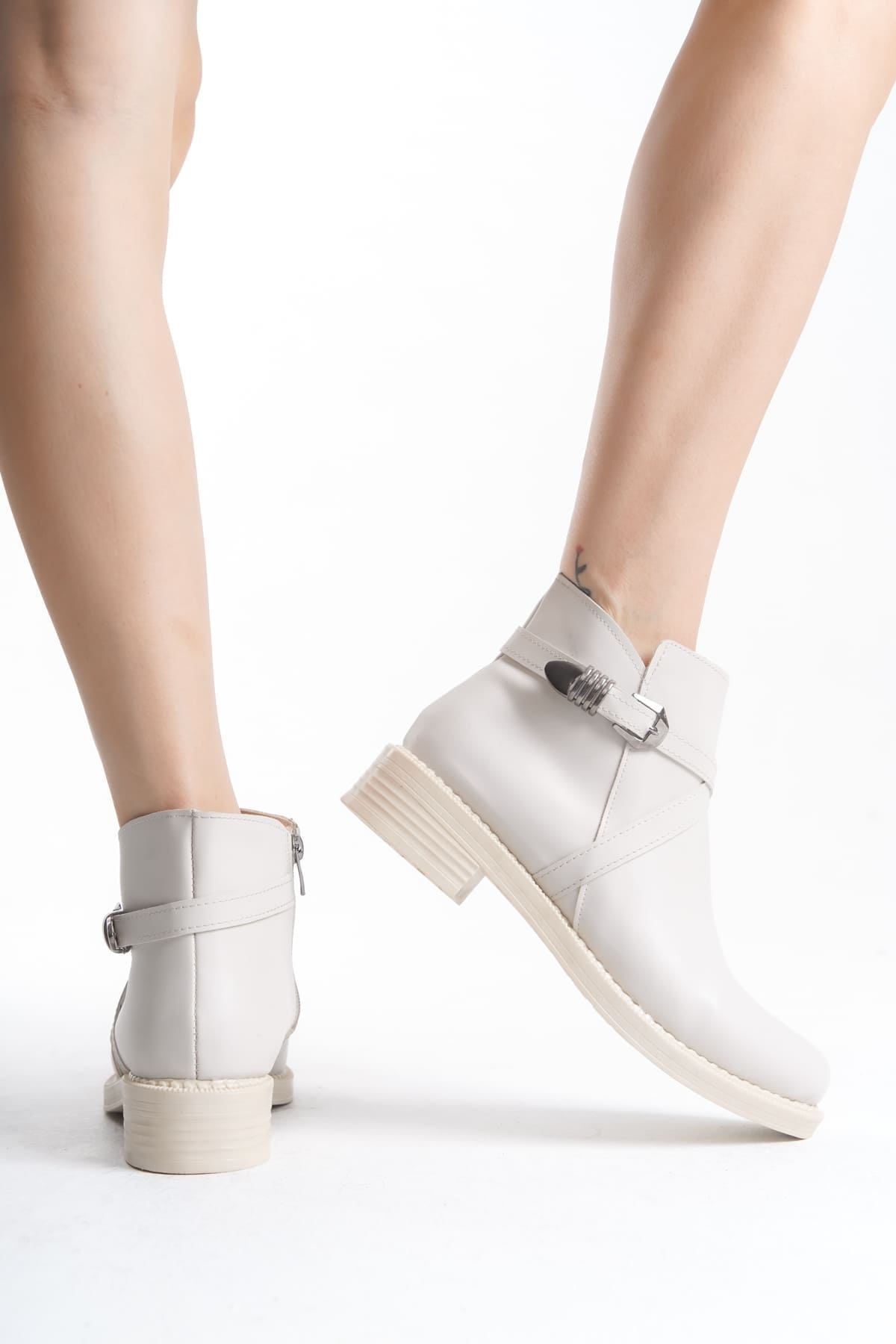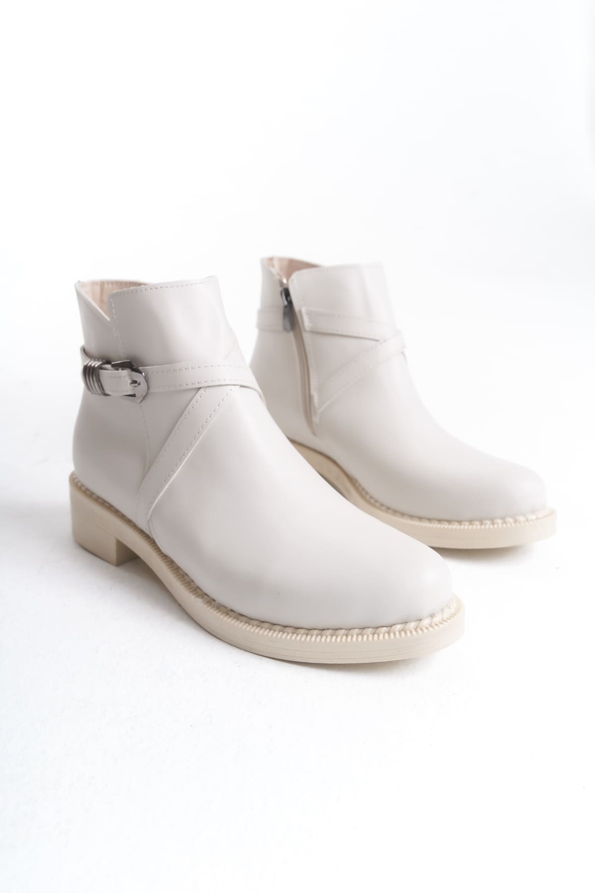 NOE - Buckled Zippered Orthopedic Sole Heeled Women's Cream Boots NOE - Buckled Zippered Orthopedic Sole Heeled Women's Cream Boots