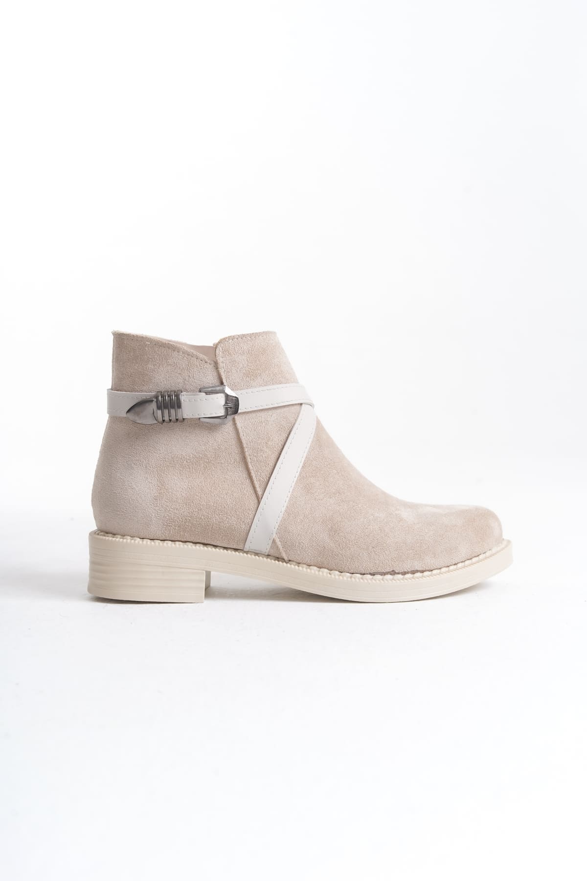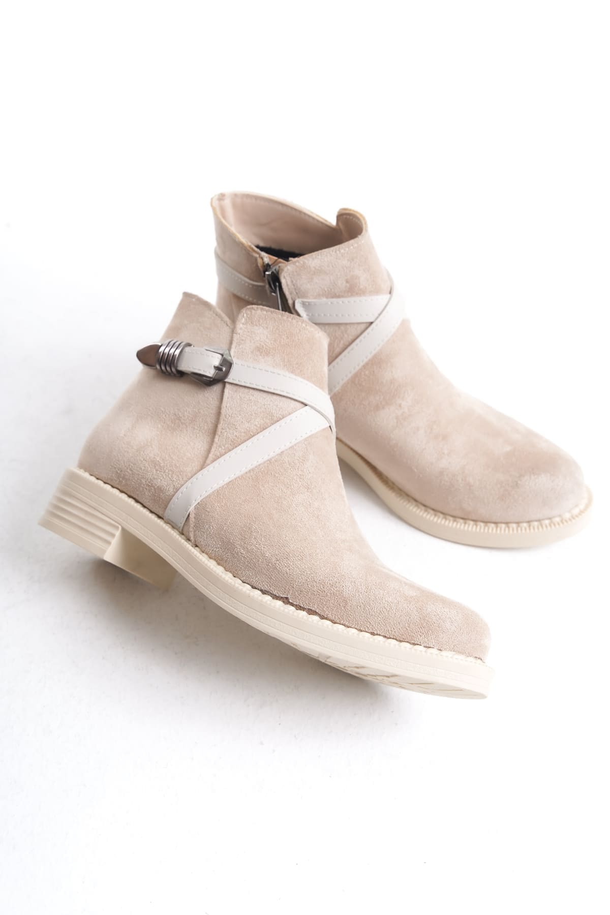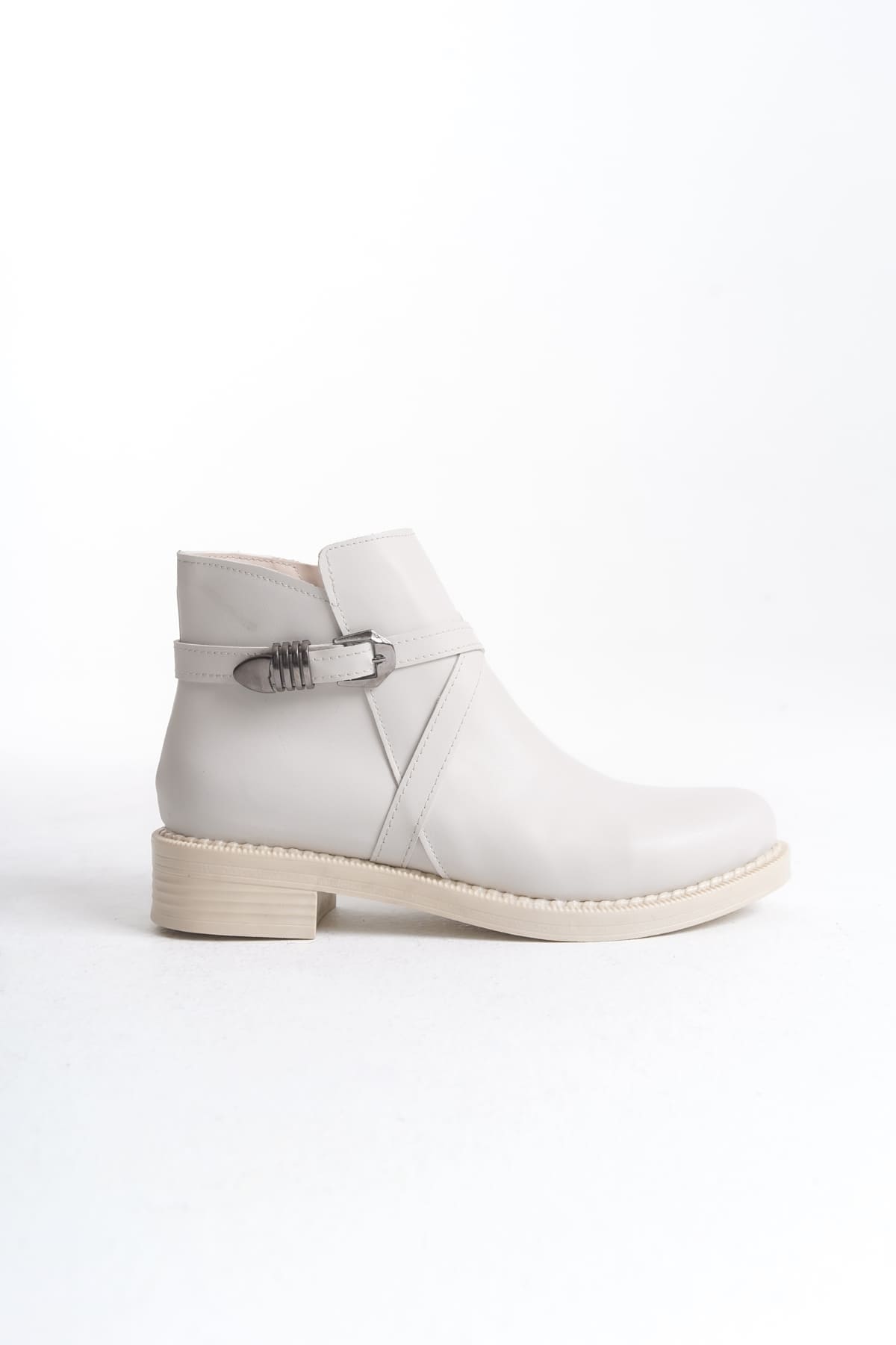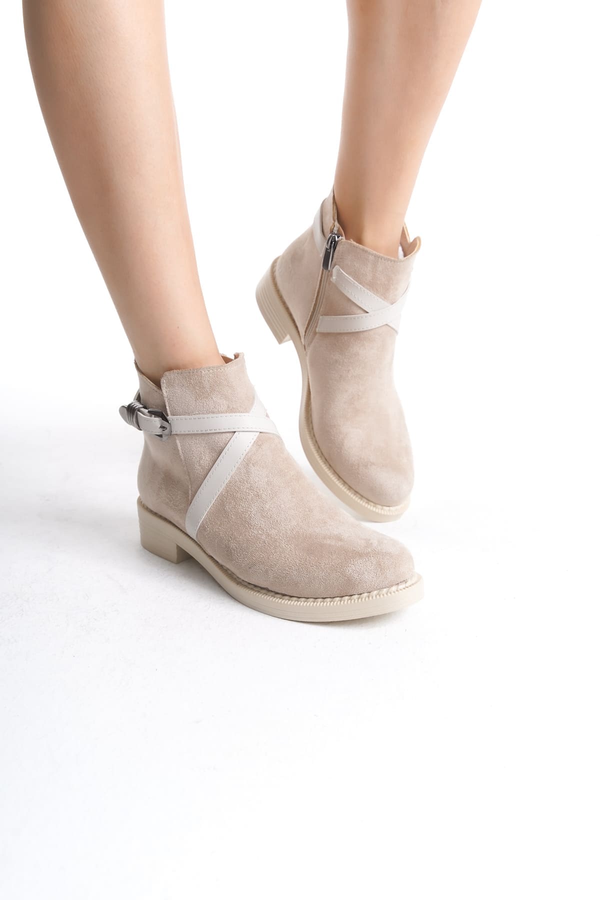 NOE - Buckled Zippered Orthopedic Sole Heeled Women's Cream Boots NOE - Buckled Zippered Orthopedic Sole Heeled Women's Cream Boots