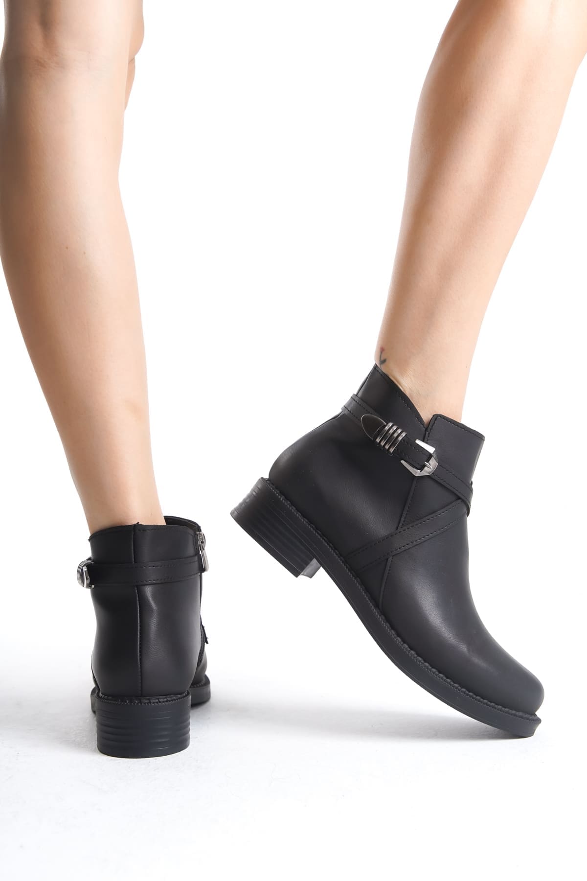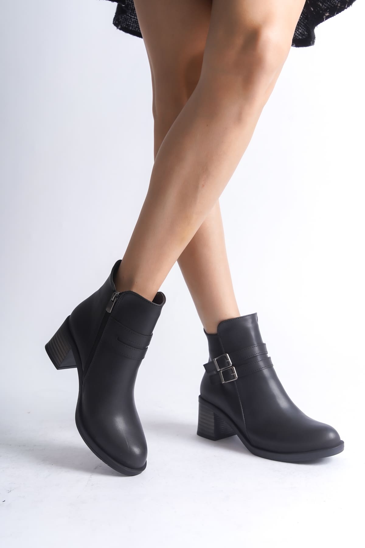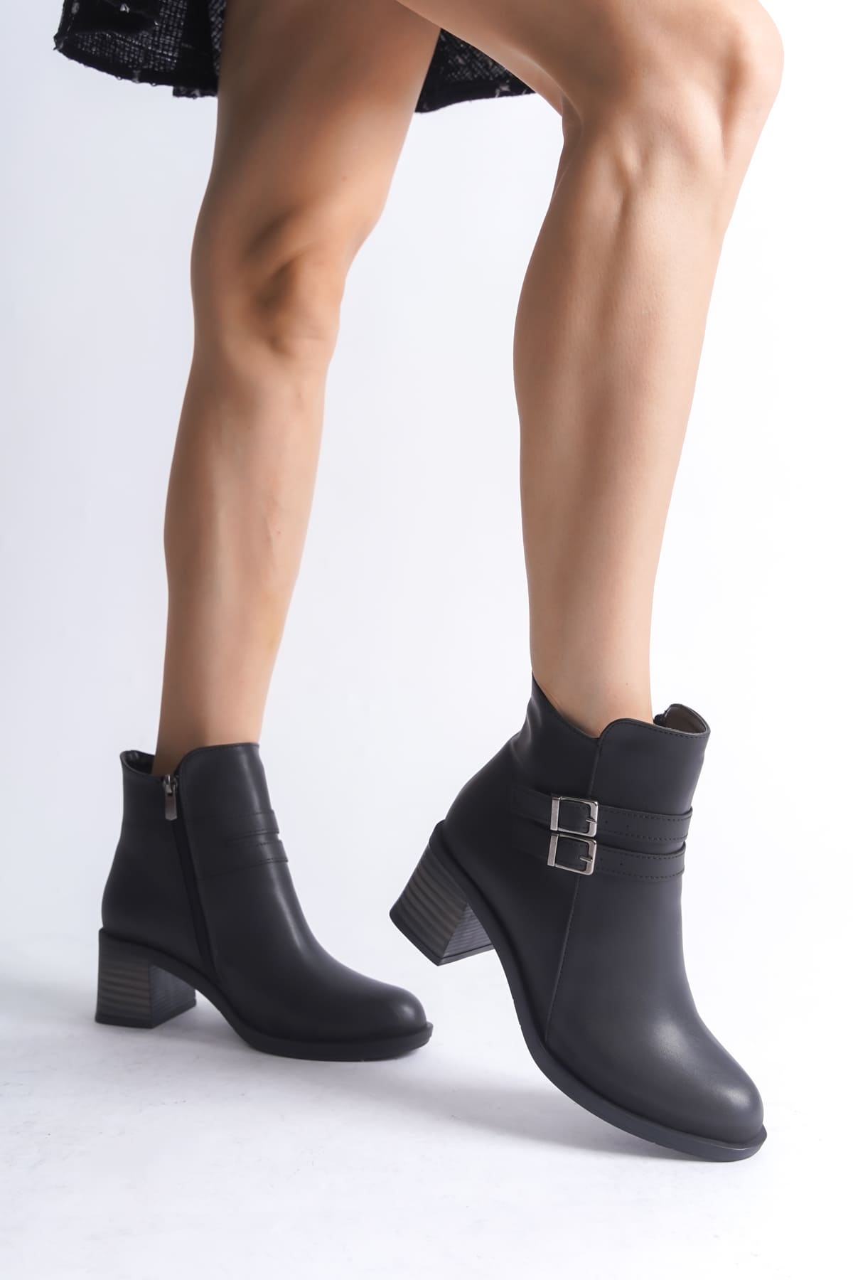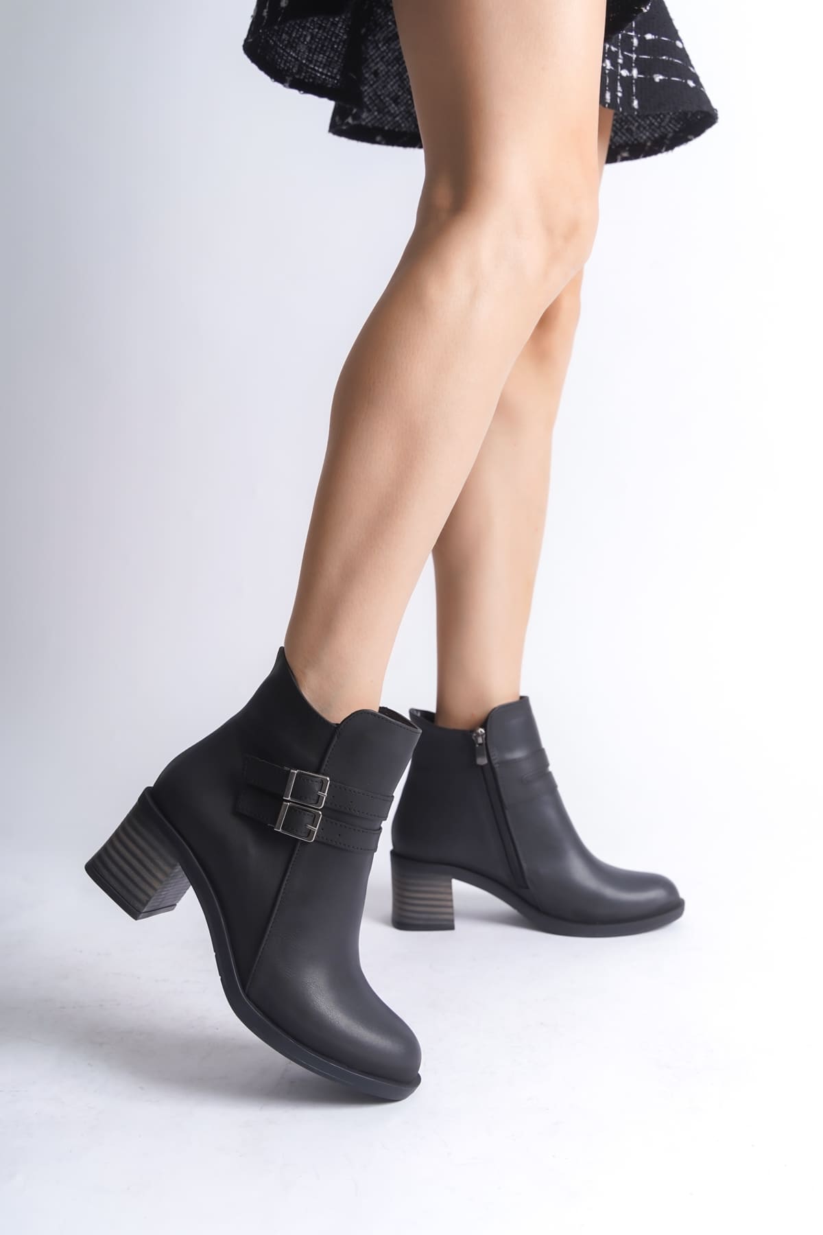 NOE - Buckled Zippered Orthopedic Sole Heeled Women's Boots Black NOE - Buckled Zippered Orthopedic Sole Heeled Women's Boots Black