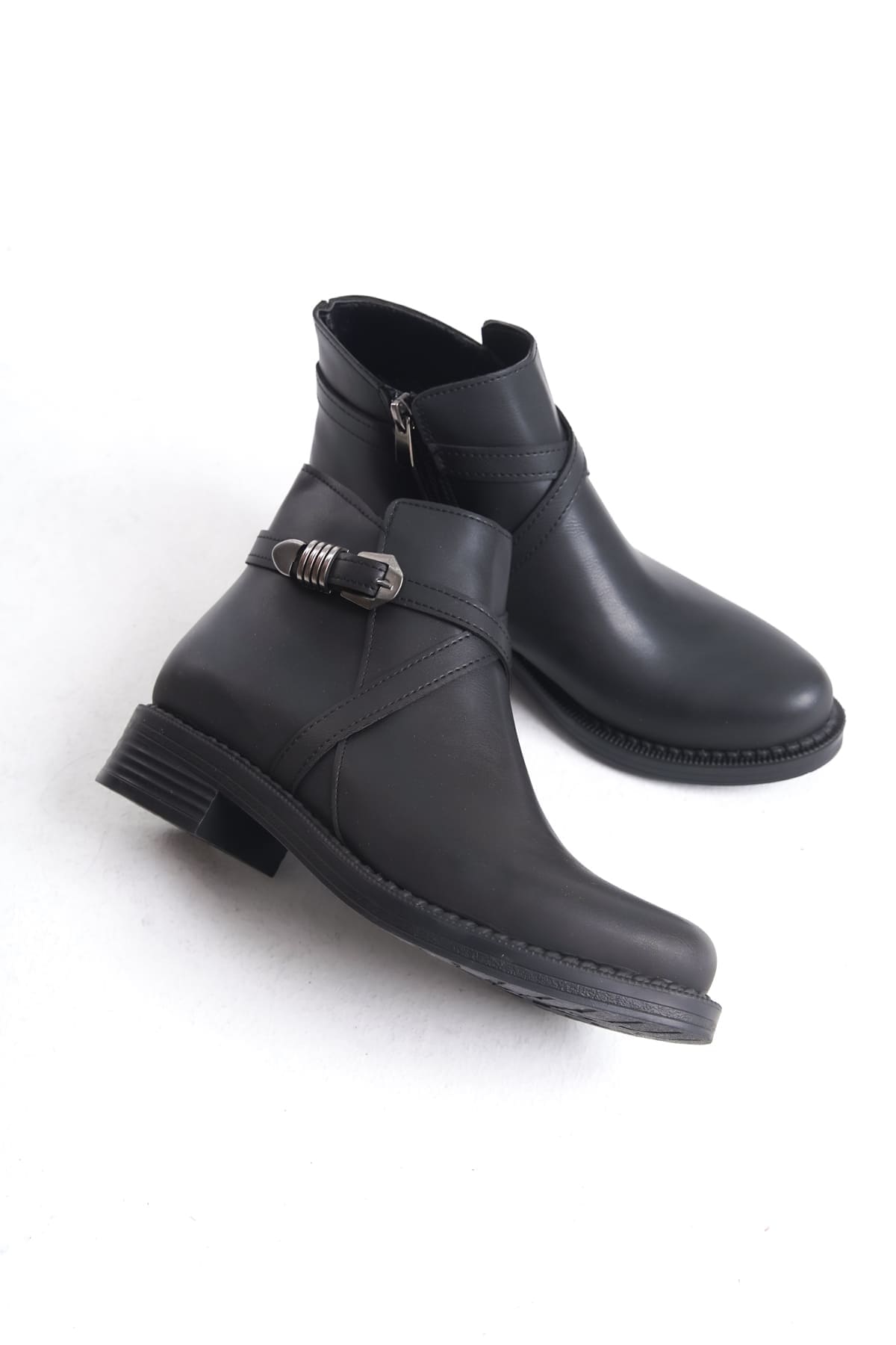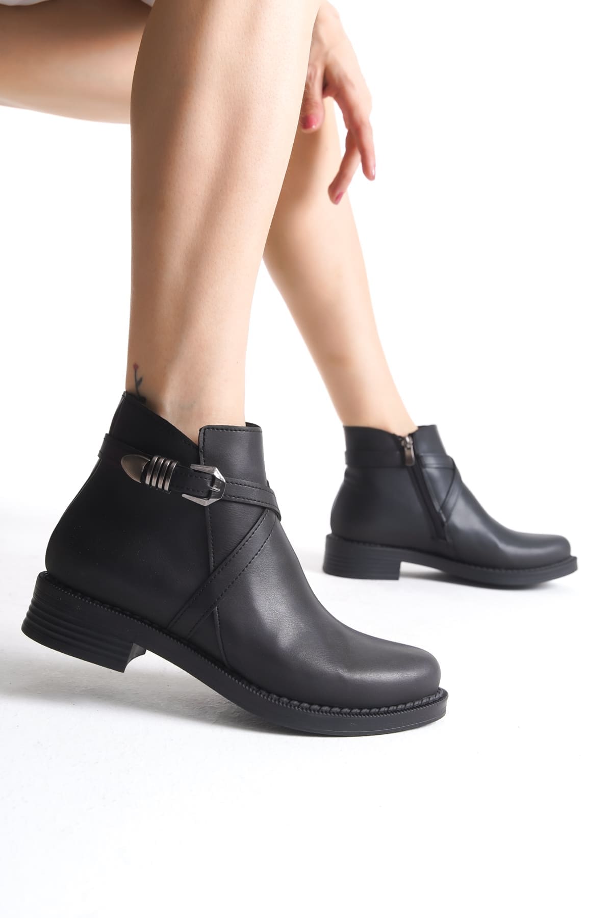 Regular price 1,499.00TL Sale price 1,099.00TLNOE - Buckled Zippered Orthopedic Sole Heeled Women's Boots Black