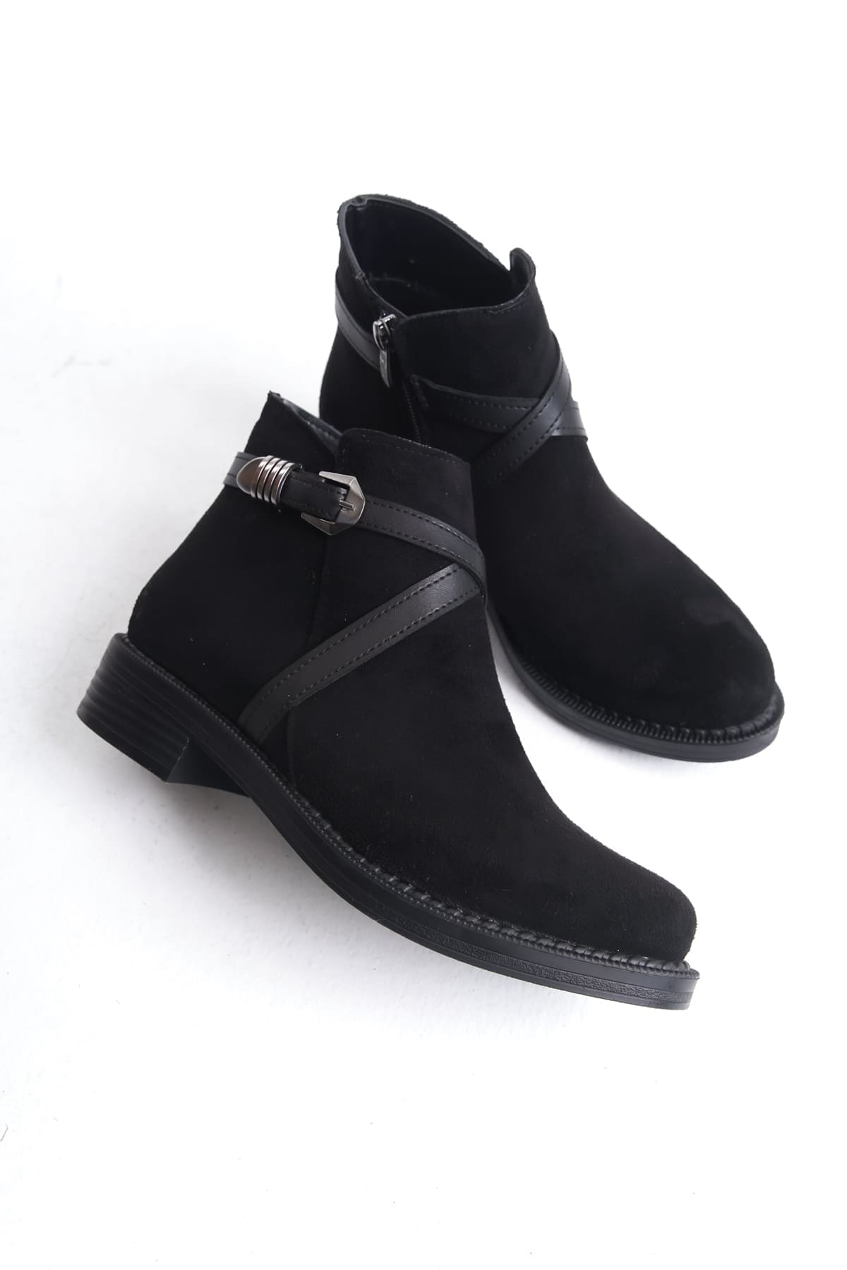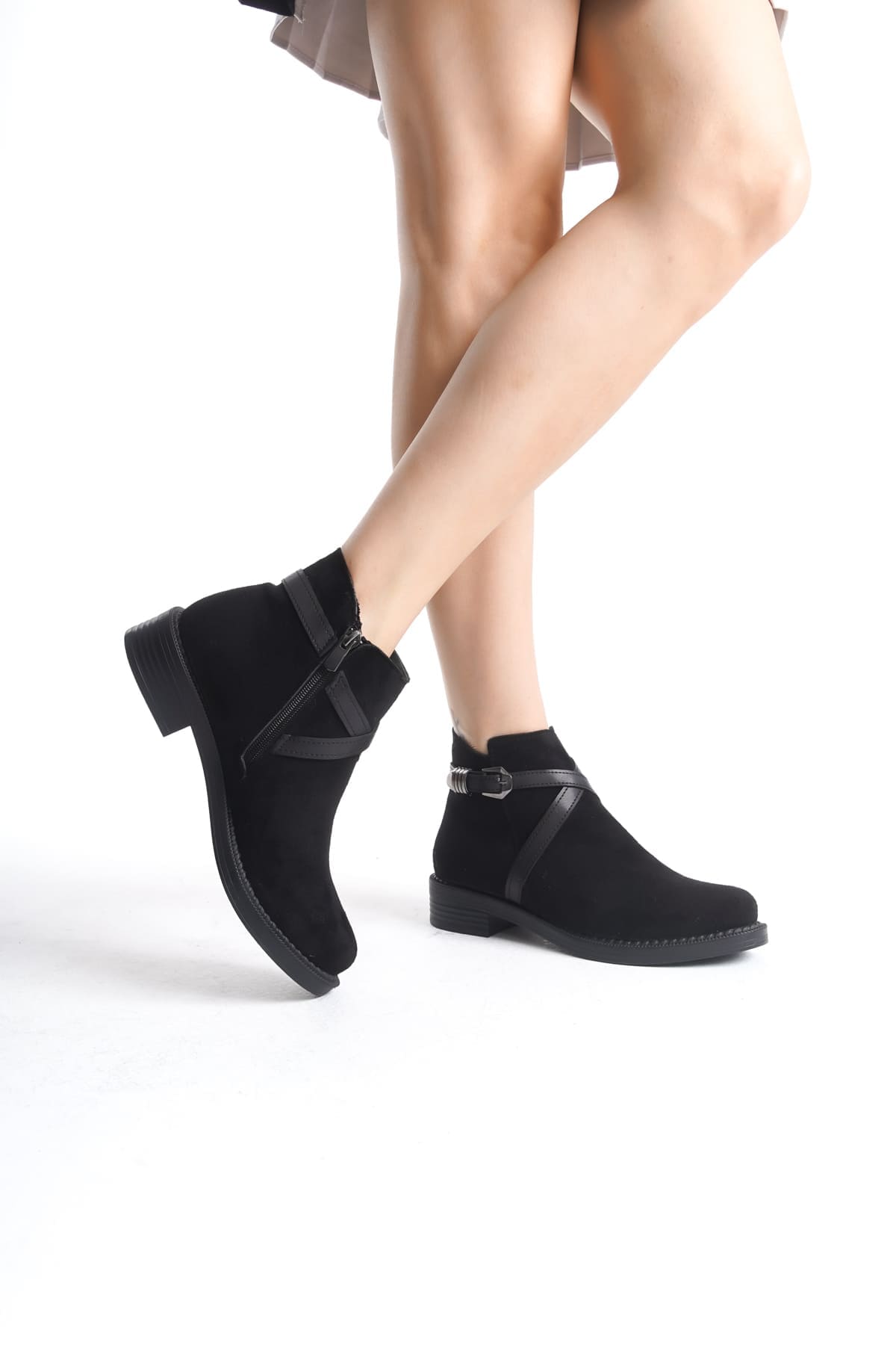 Regular price 1,599.00TL Sale price 1,100.00TLLARIO Zippered Orthopedic Sole Heeled Suede Women's Boots - Black