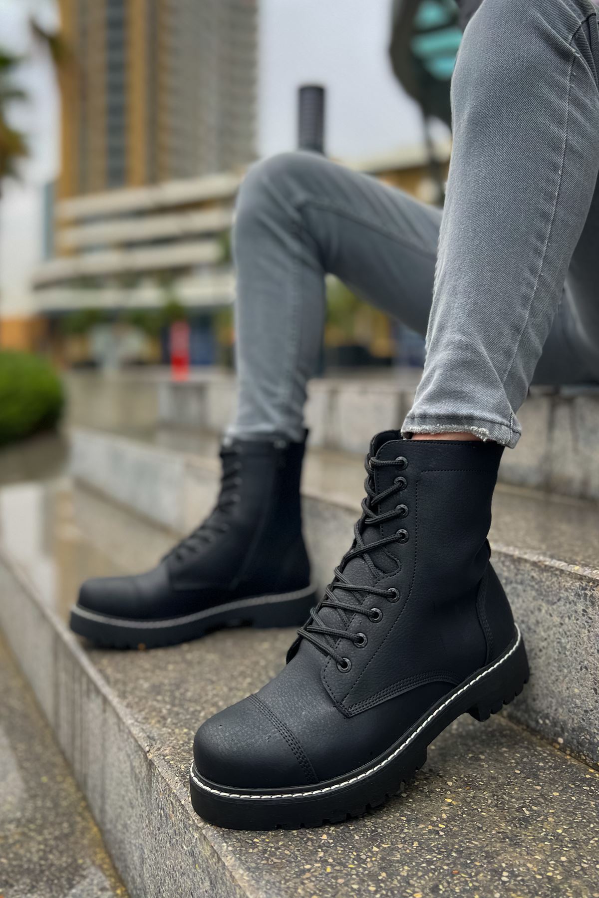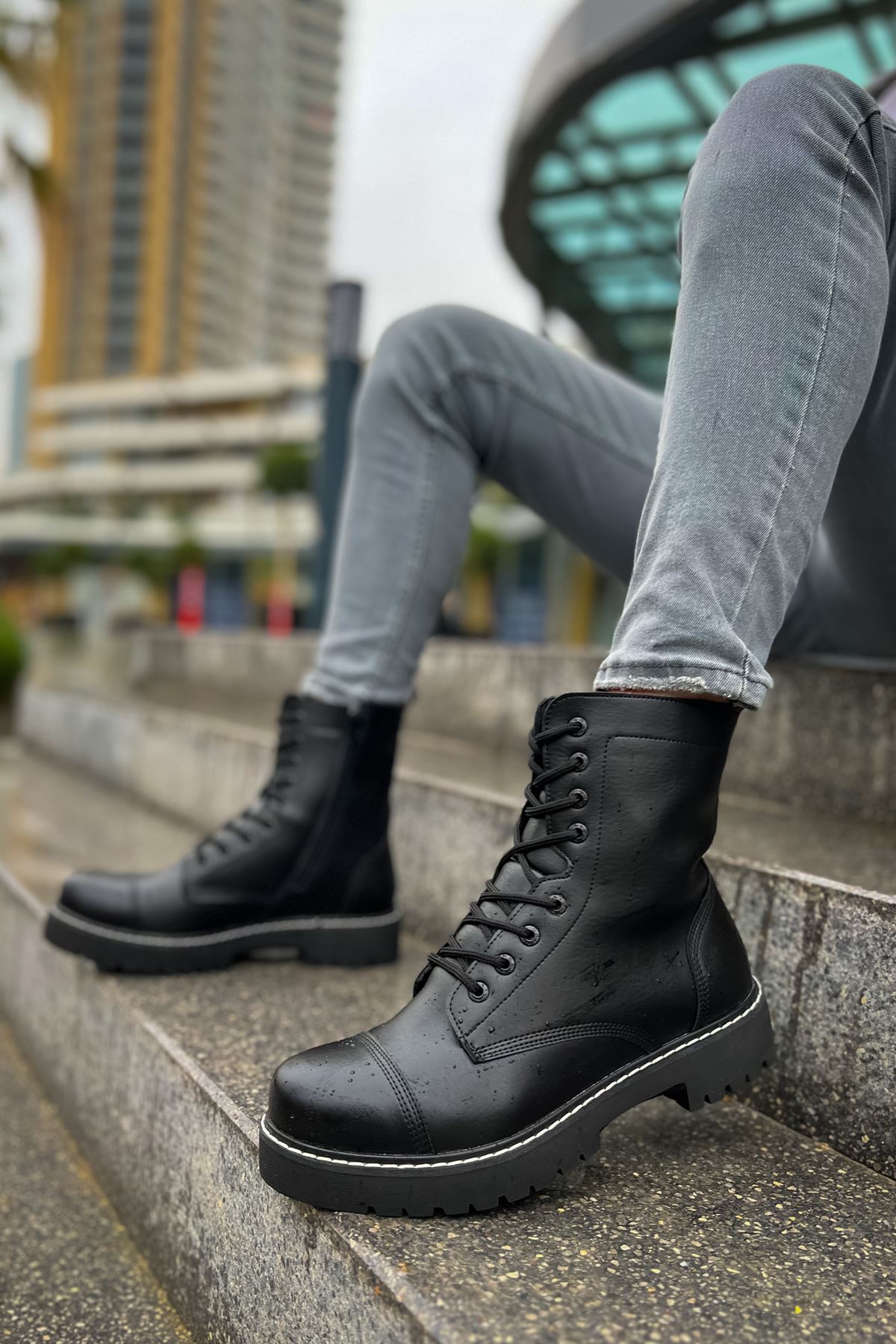 Military Premium Fermuarlı Kışlık Erkek Bot Siyah Mat -