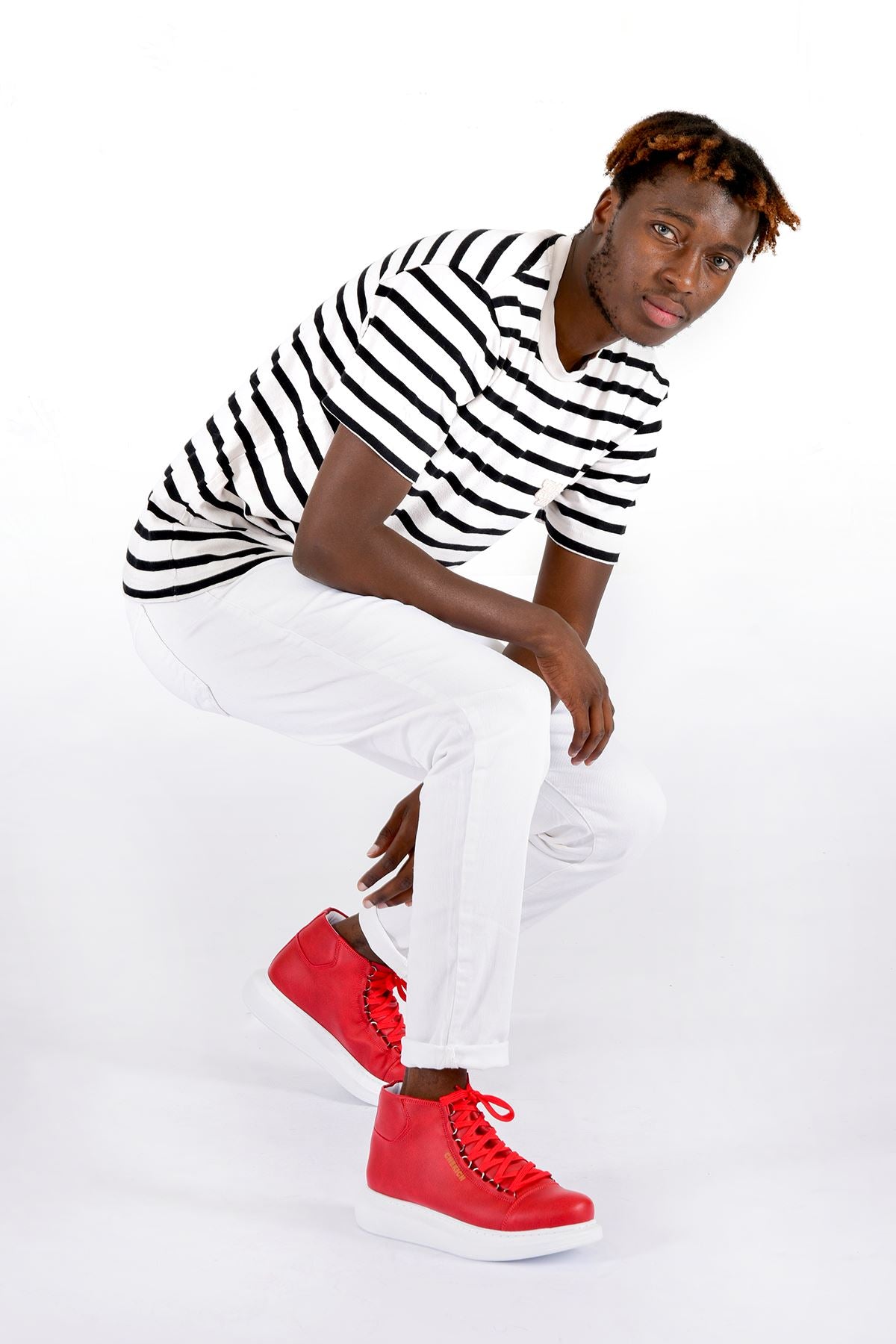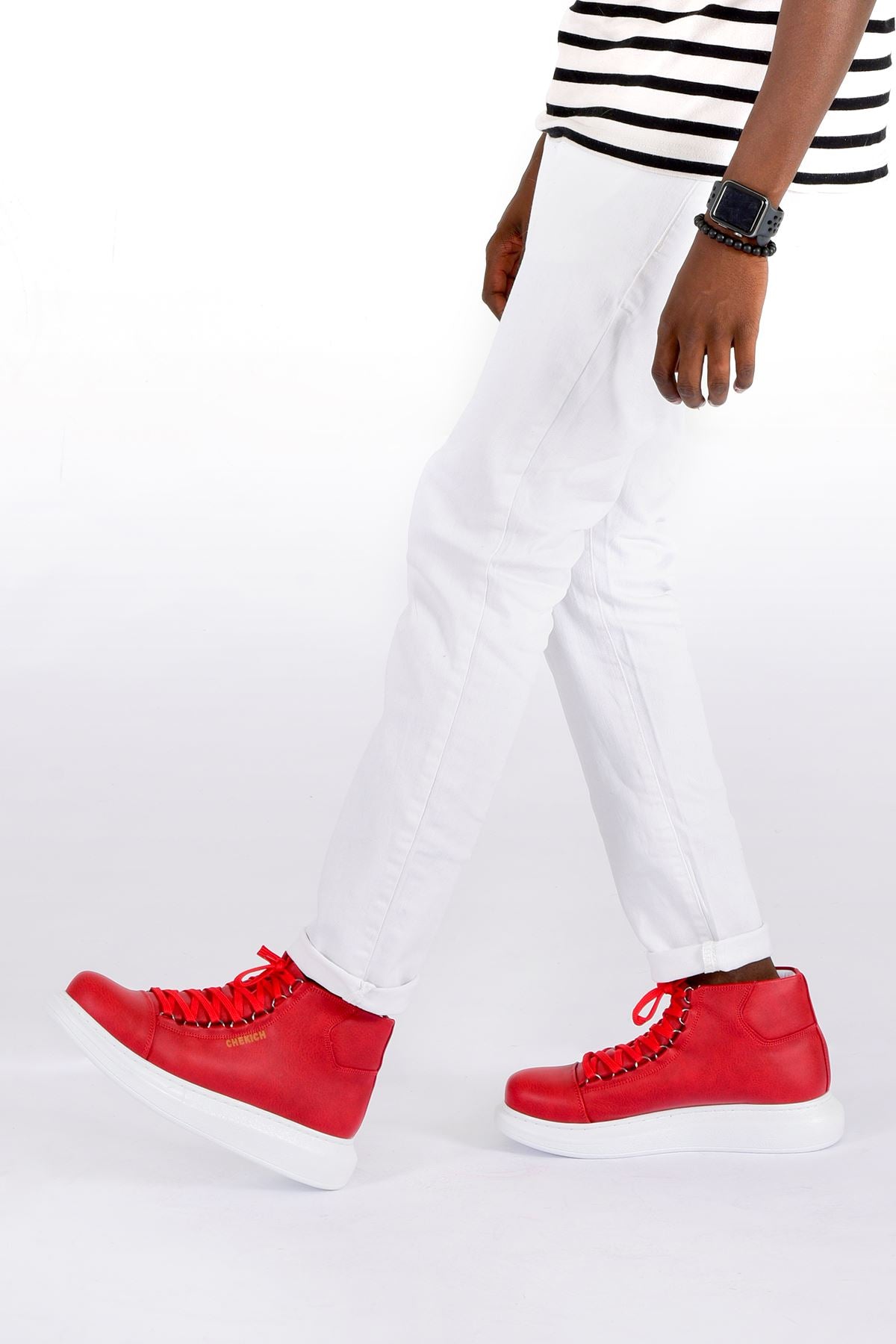 Roma Premium Kalite Bağcıklı Erkek Bot Kırmızı -