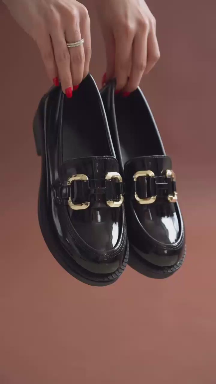 Modern şehir kadınının stil kodlarına uyum sağlayan bu loafer; rugan yüzeyi, altın detaylı tokası ve rahat kalıbıyla hem ofiste hem günlük kombinlerde fark yaratır.